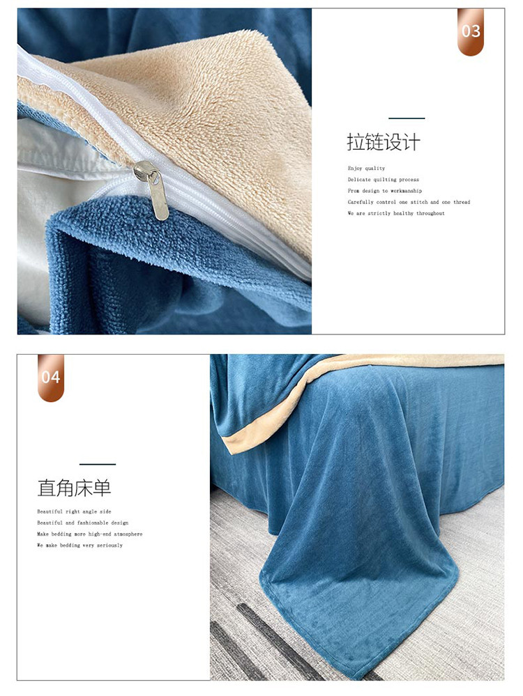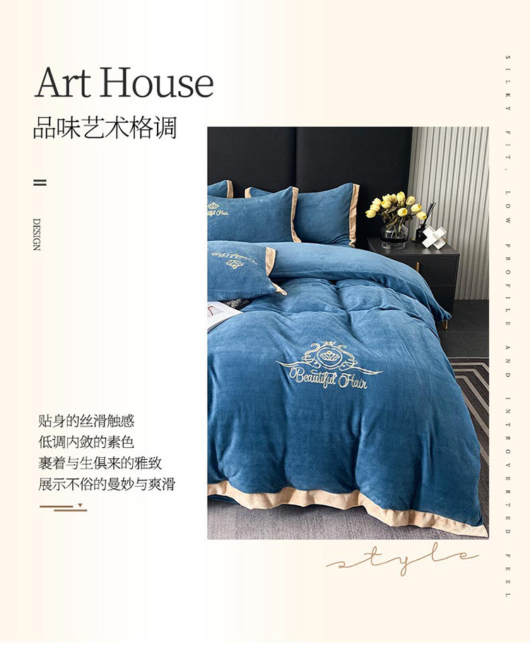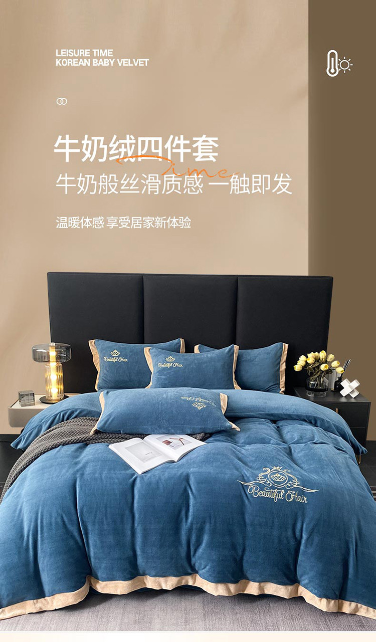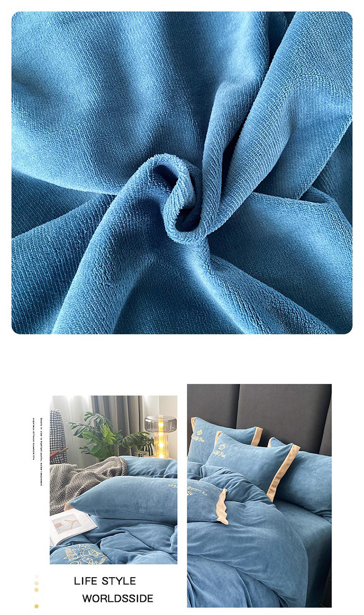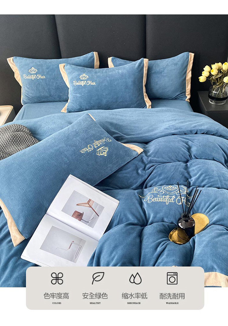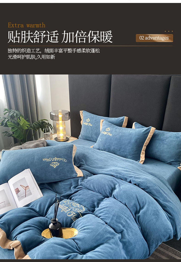 铠畅 2022年新款冬季爆款牛奶绒绒四件套 皇冠-蓝