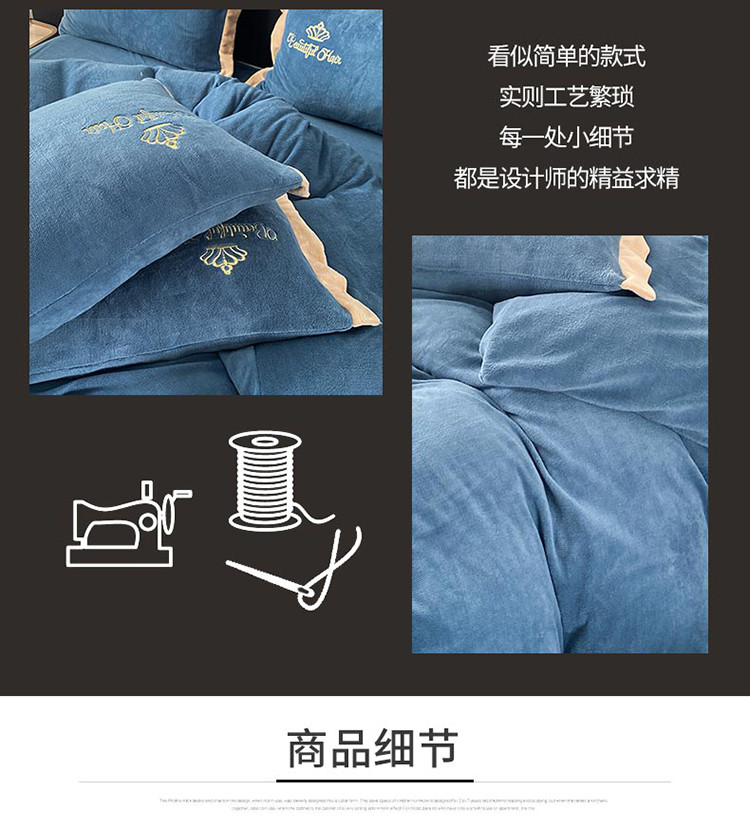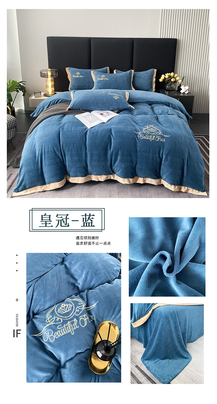 商品名称:铠畅 2022年新款冬季爆款牛奶绒绒四件套 皇冠-蓝