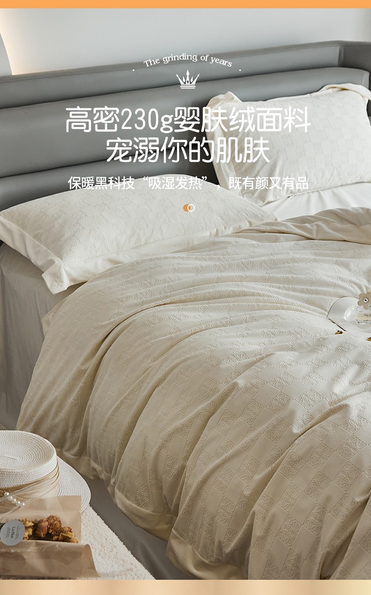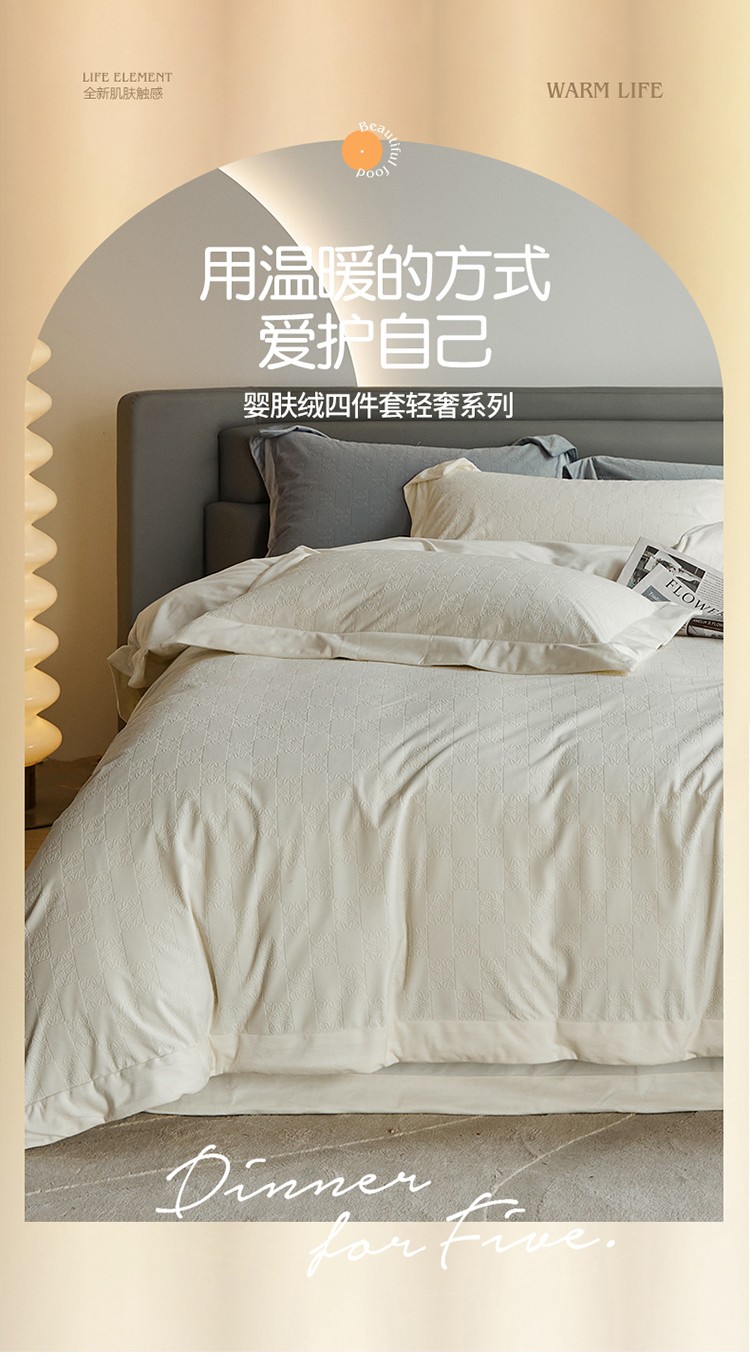名品优仓2022新款婴肤绒轻奢系列四件套-布加迪 奶昔白
