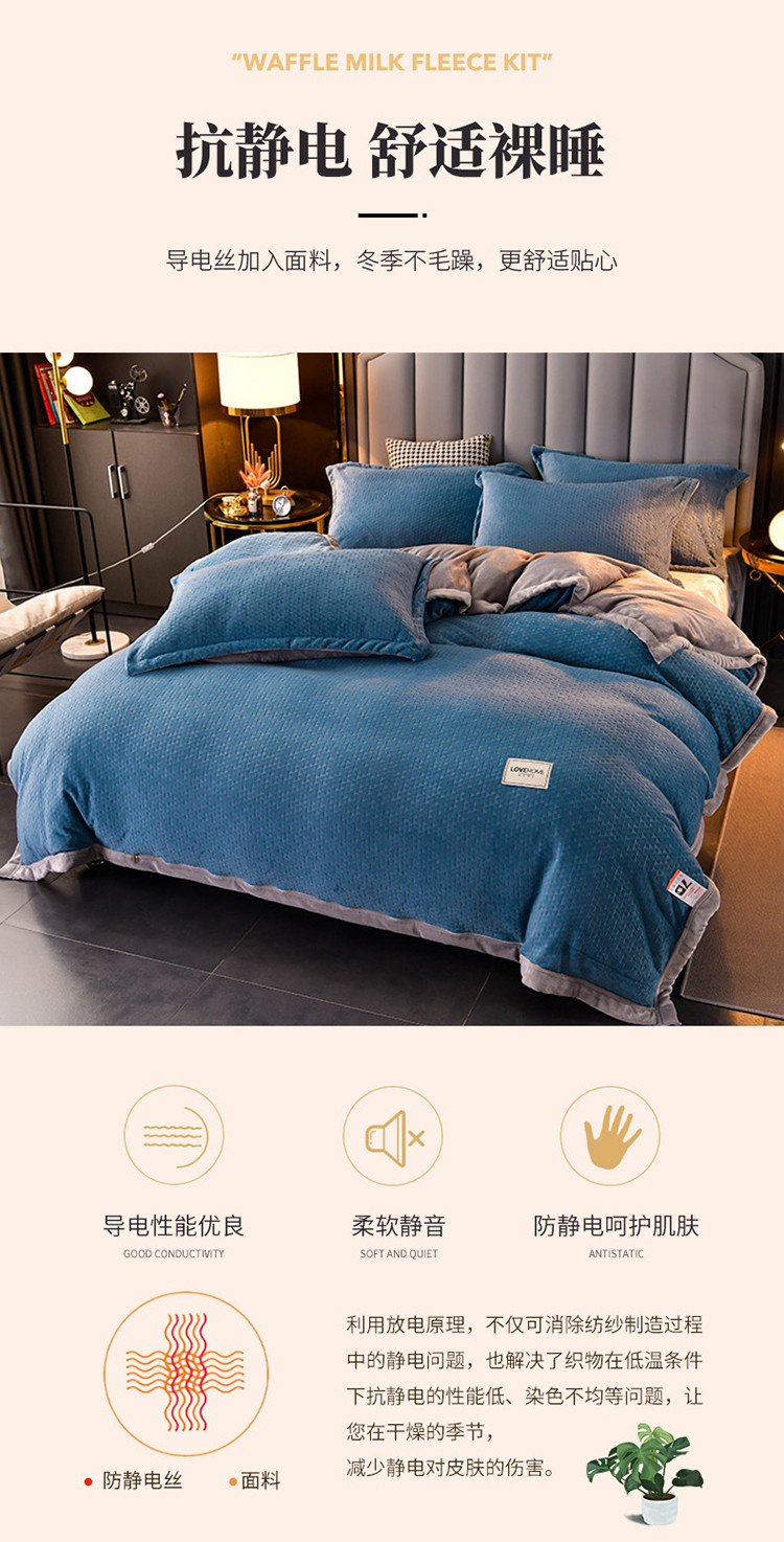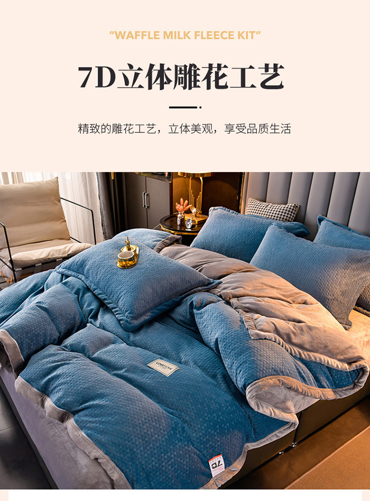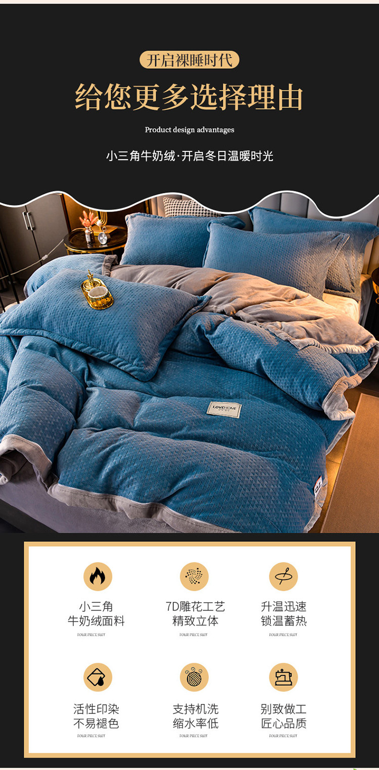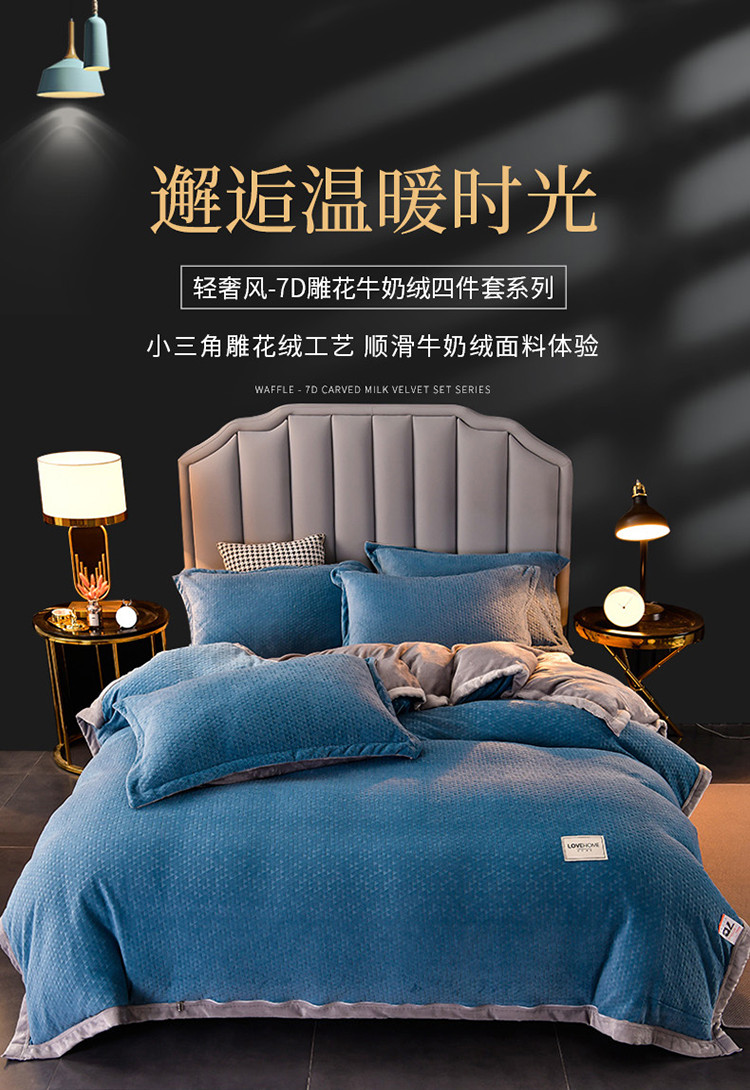 当前位置: 91家纺网 > 商品网购 > 床品套件 > 四件套 > 牛奶绒四件套 > 小牛席业 2022新款雕花牛奶绒四件套 小三角牛奶绒(蓝色)