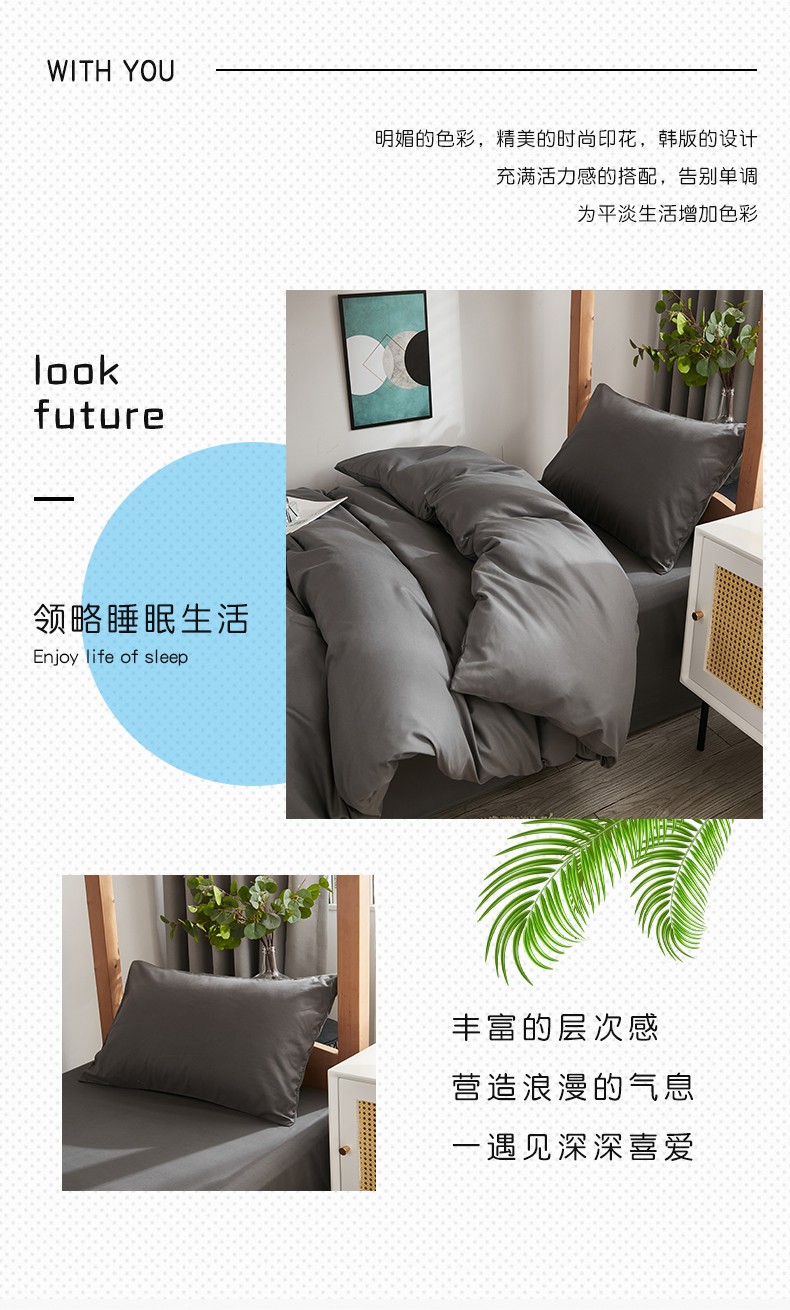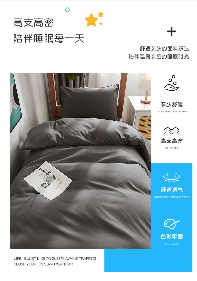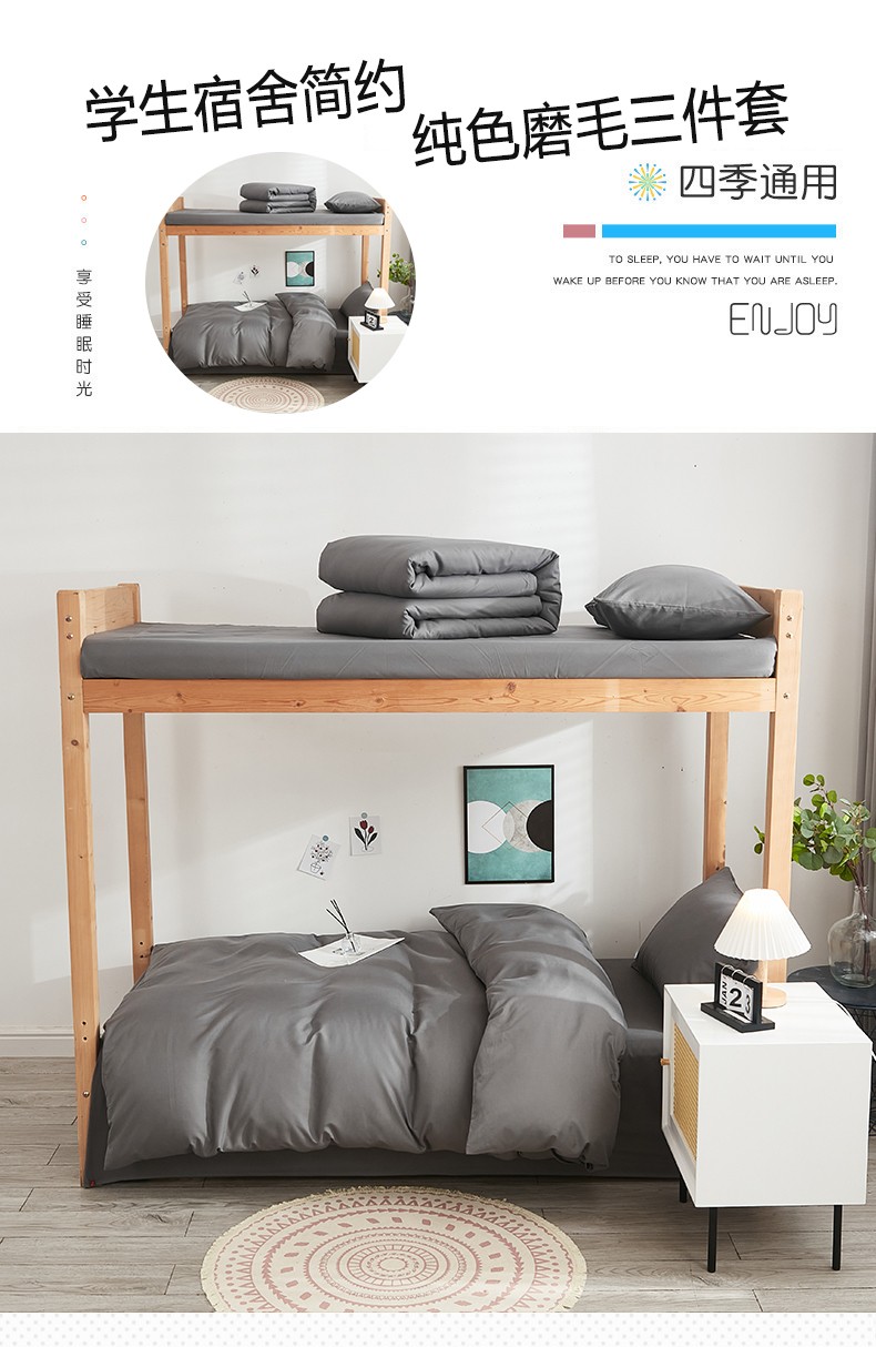 商品名称:啊雅家居 新款ins学生宿舍双拼纯色磨毛三件套 深灰