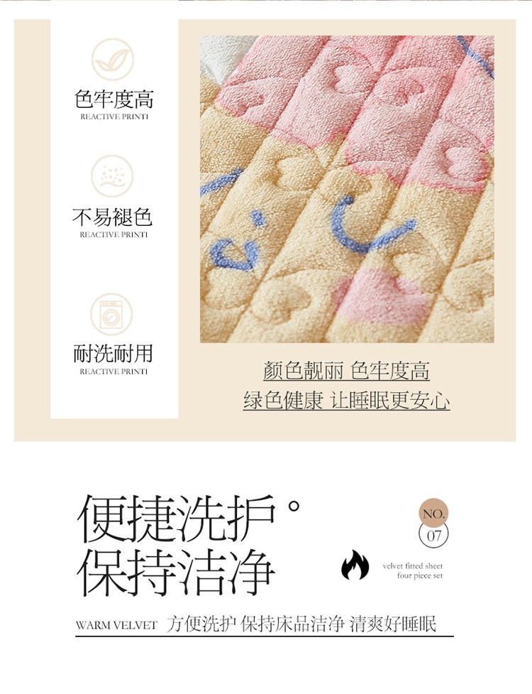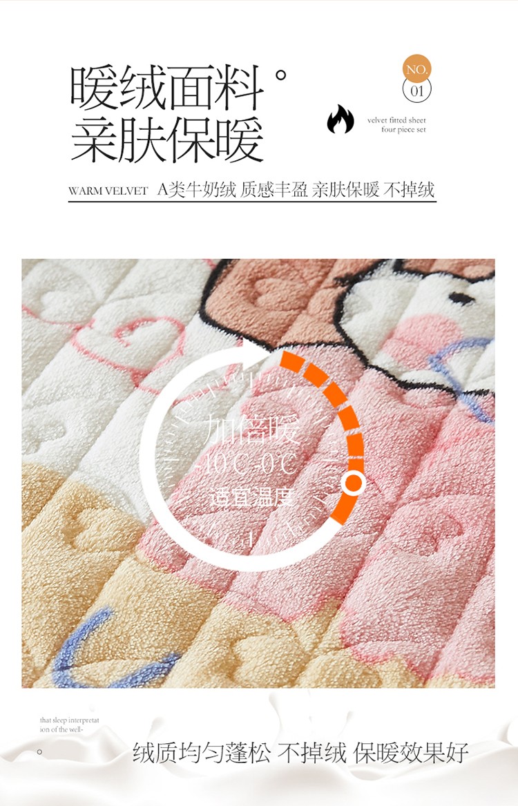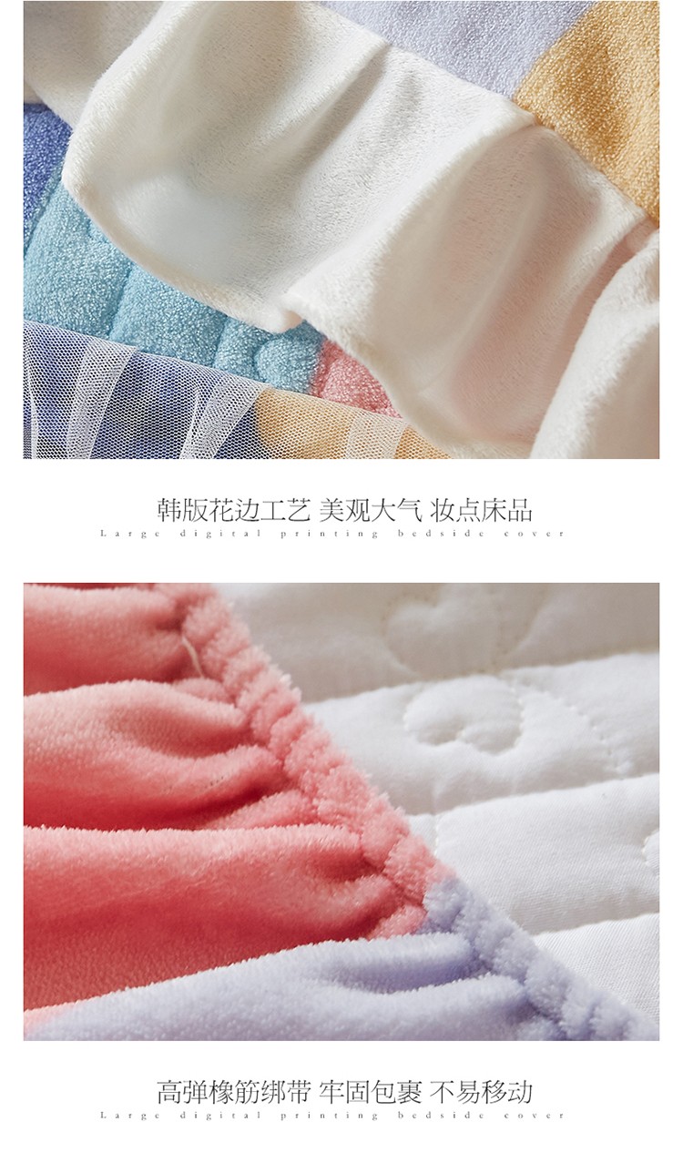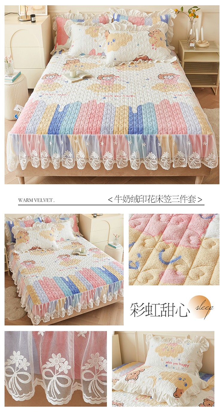 • 91家纺网 家纺一手货源 找家纺 宜凡2022新款牛奶绒A类印花床笠三件套 彩虹甜心