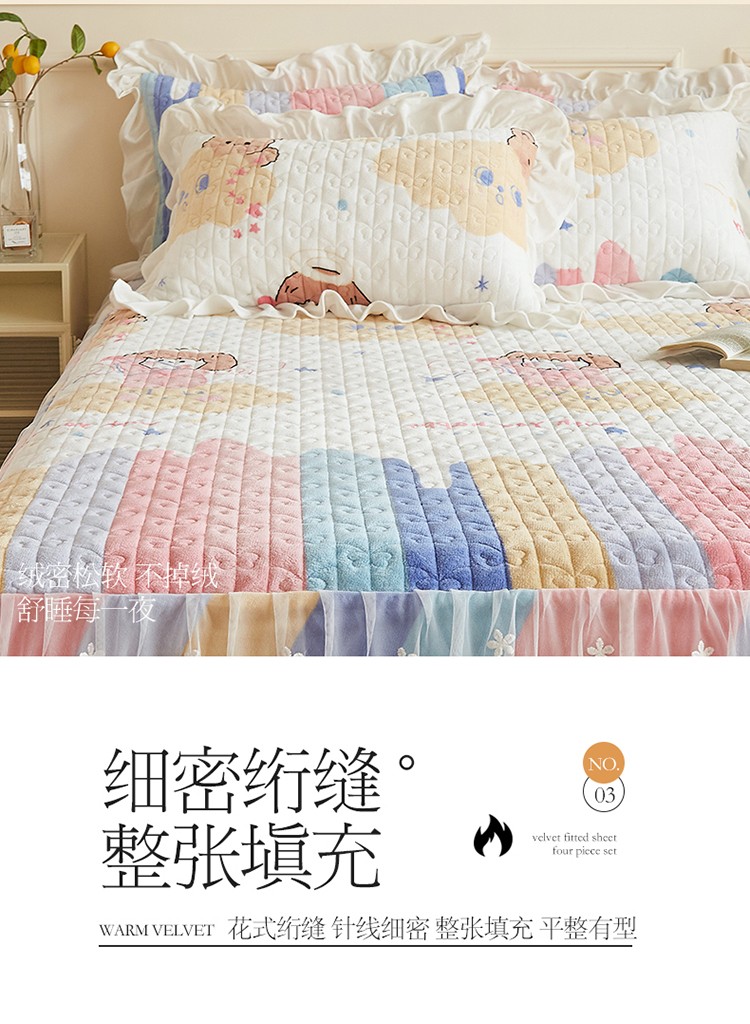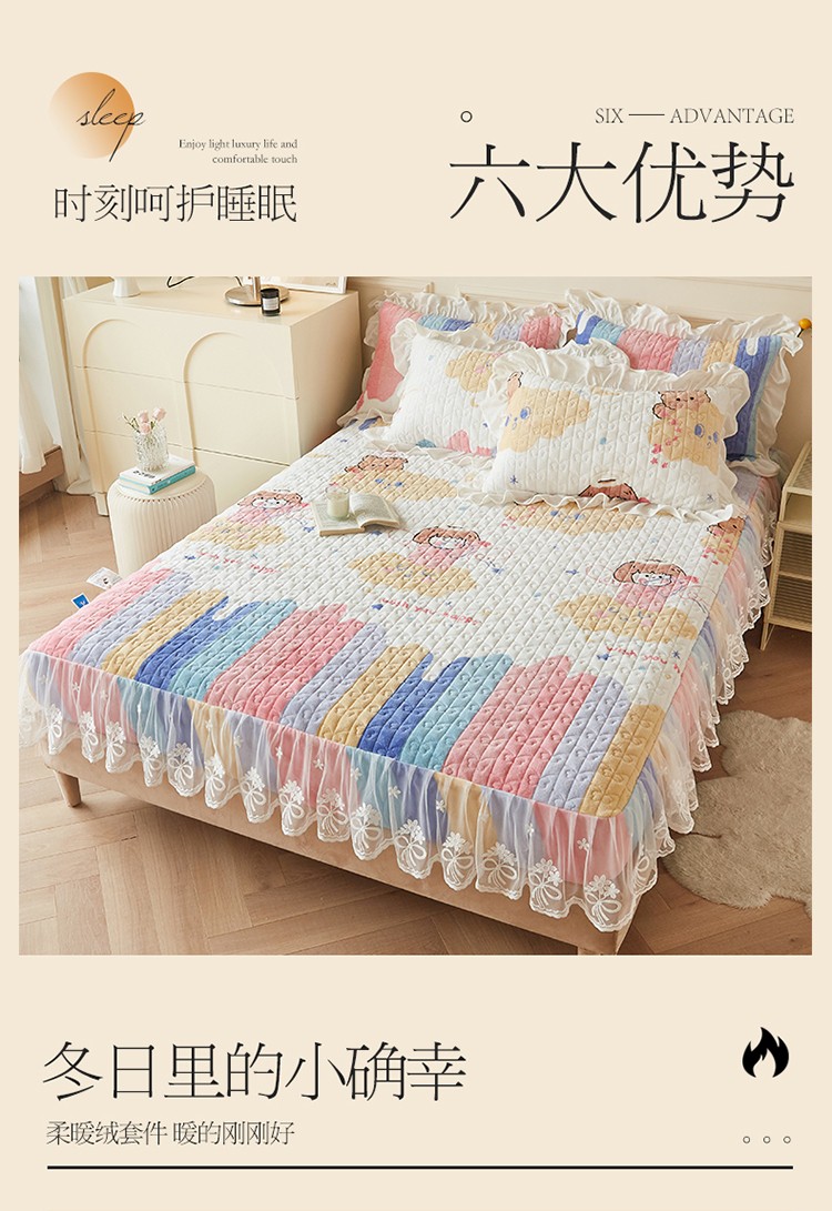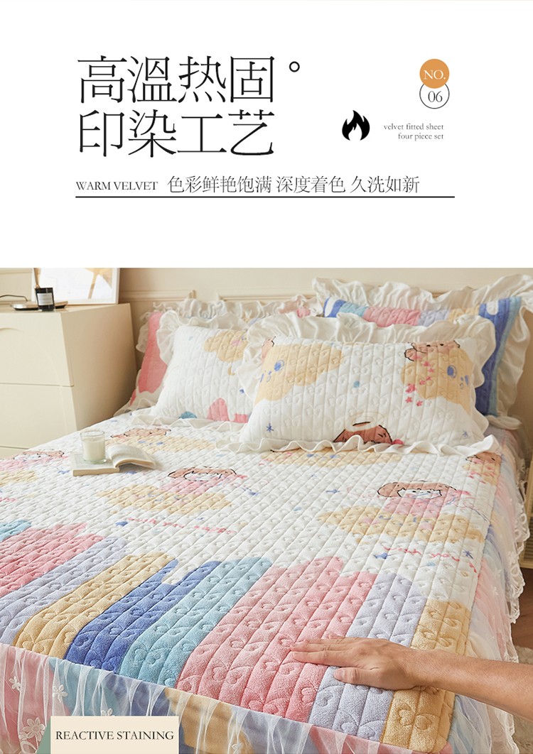 (总)宜凡家纺 2025新款兔绒提花牛奶绒夹棉床裙四件套,爱心 少女粉,爱心 粉紫,爱心 驼色,蝶舞 大红,蝶舞 米色,蝶舞 浅紫,蝶舞 玉色,简爱 苍青,简爱 豆沙紫,简爱 玉色,樱桃 苍青,樱桃 豆沙紫,樱桃 奶油白