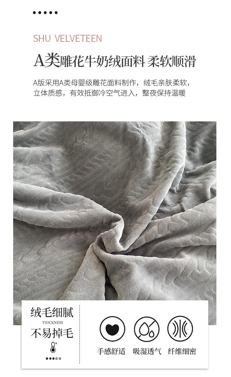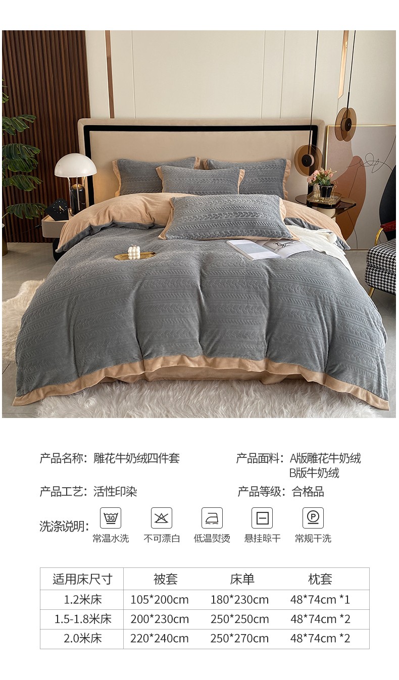 商品名称:铠畅 2022新款230克轻奢简约烂花绒牛奶绒剪花四件套 艾薇-灰