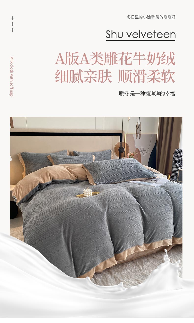 (总)铠畅家纺 2025新款丰眠系列牛奶绒床盖四件套,丰眠-粉玉,丰眠-海藻青,丰眠-灰紫,丰眠-奶油咖,丰眠-雾蓝