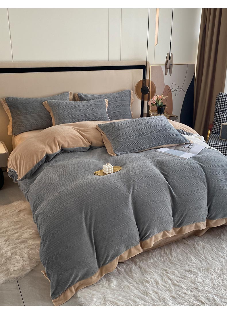 铠畅 2022新款230克轻奢简约烂花绒牛奶绒剪花四件套 艾薇-灰