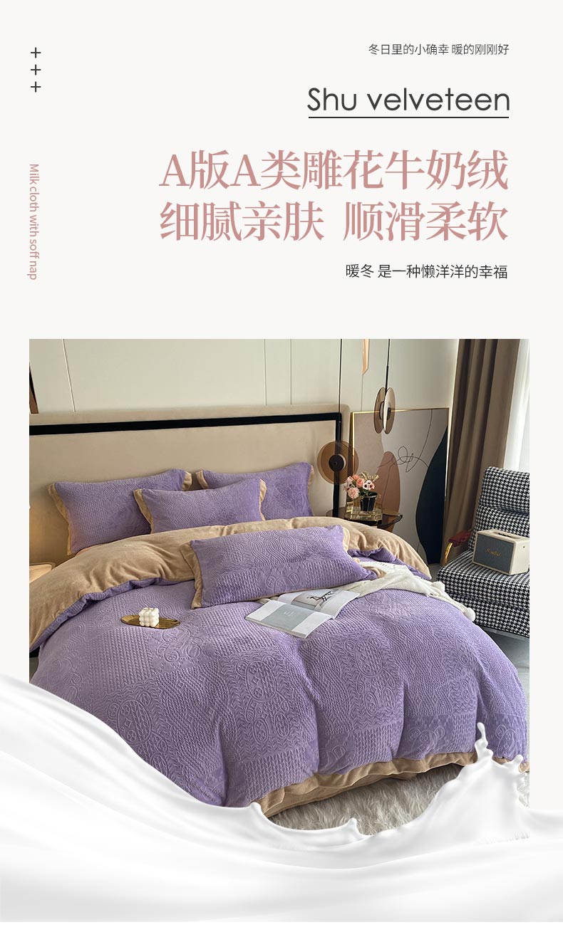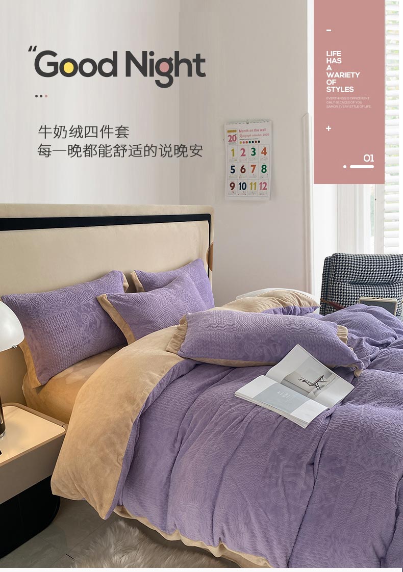(总)铠畅家纺 2025新款丰眠系列牛奶绒床盖四件套,丰眠-粉玉,丰眠-海藻青,丰眠-灰紫,丰眠-奶油咖,丰眠-雾蓝