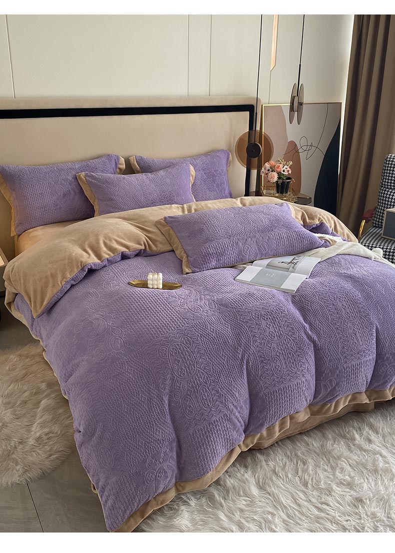铠畅 2022新款230克轻奢简约烂花绒牛奶绒剪花四件套 魅力熊-紫