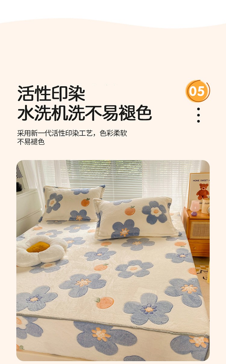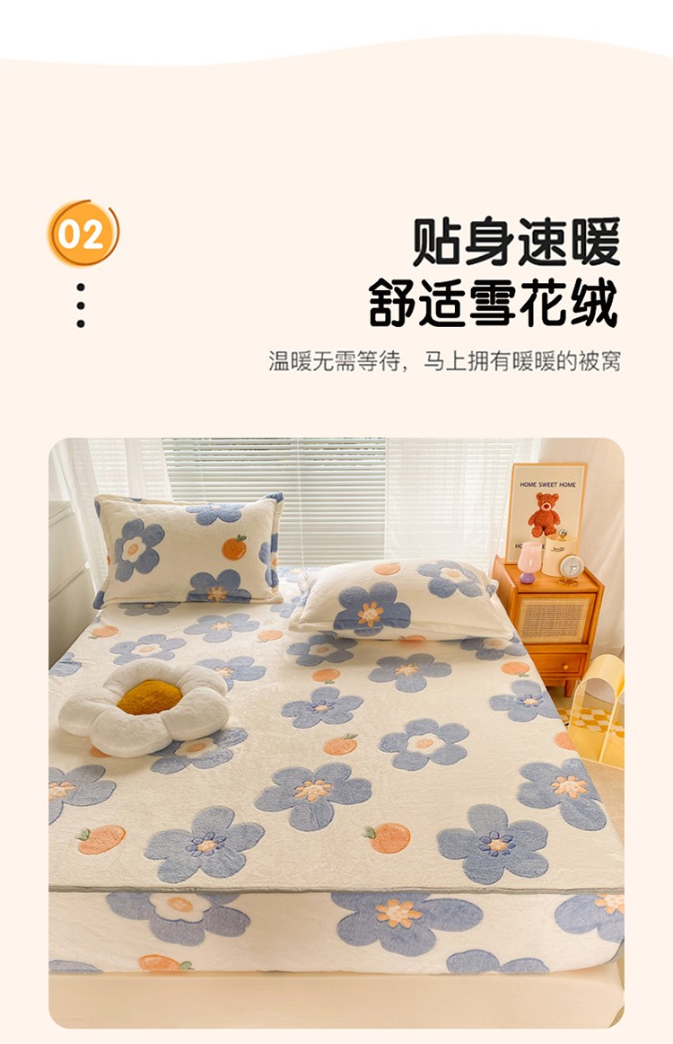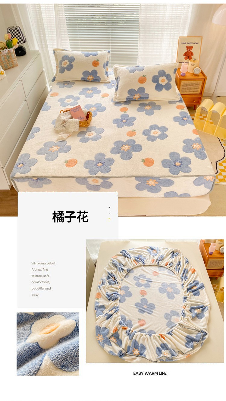 商品名称:慕尚 2022新款加厚保暖雪花绒床笠 橘子花