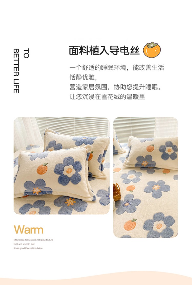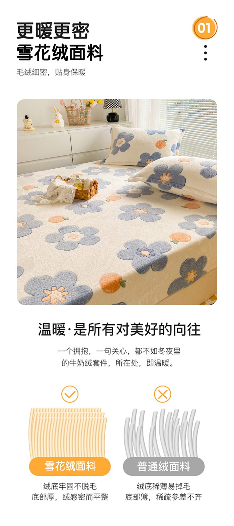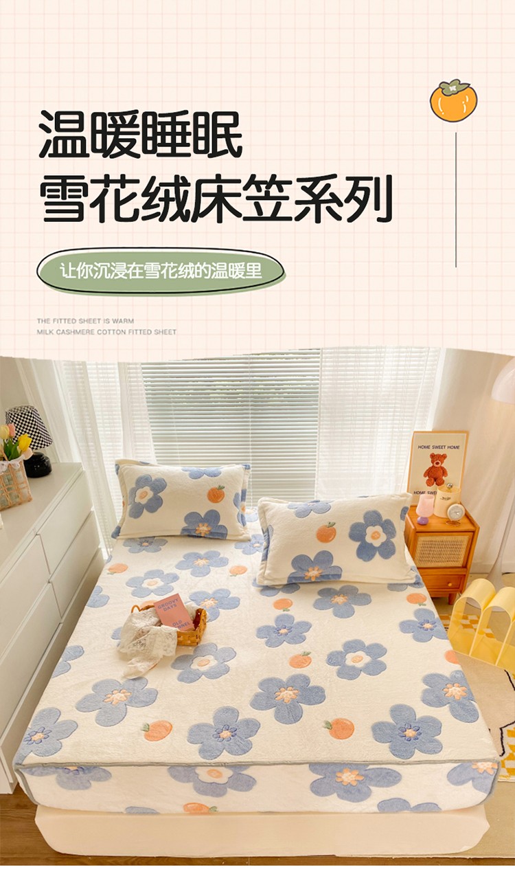 慕尚 2022新款加厚保暖雪花绒床笠 橘子花