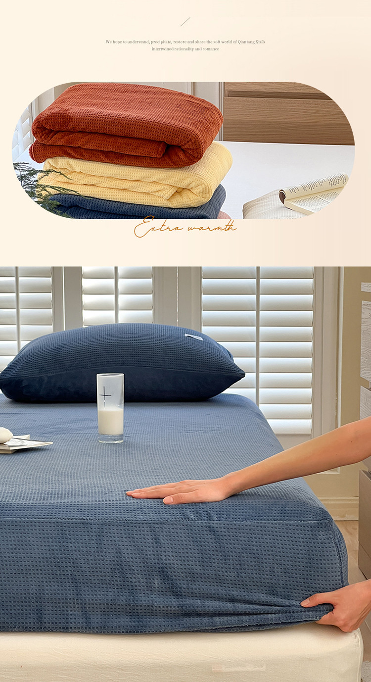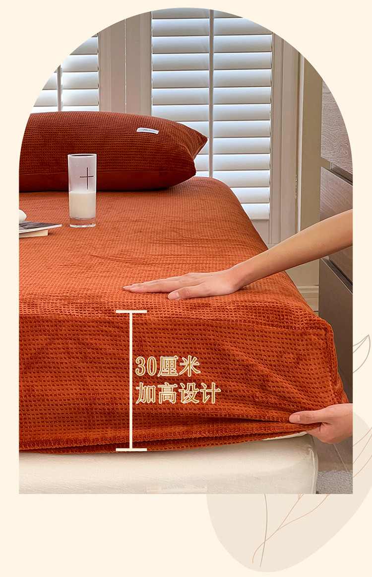(总)时光里 2022新款全消光230克华夫格绒牛奶绒单床笠