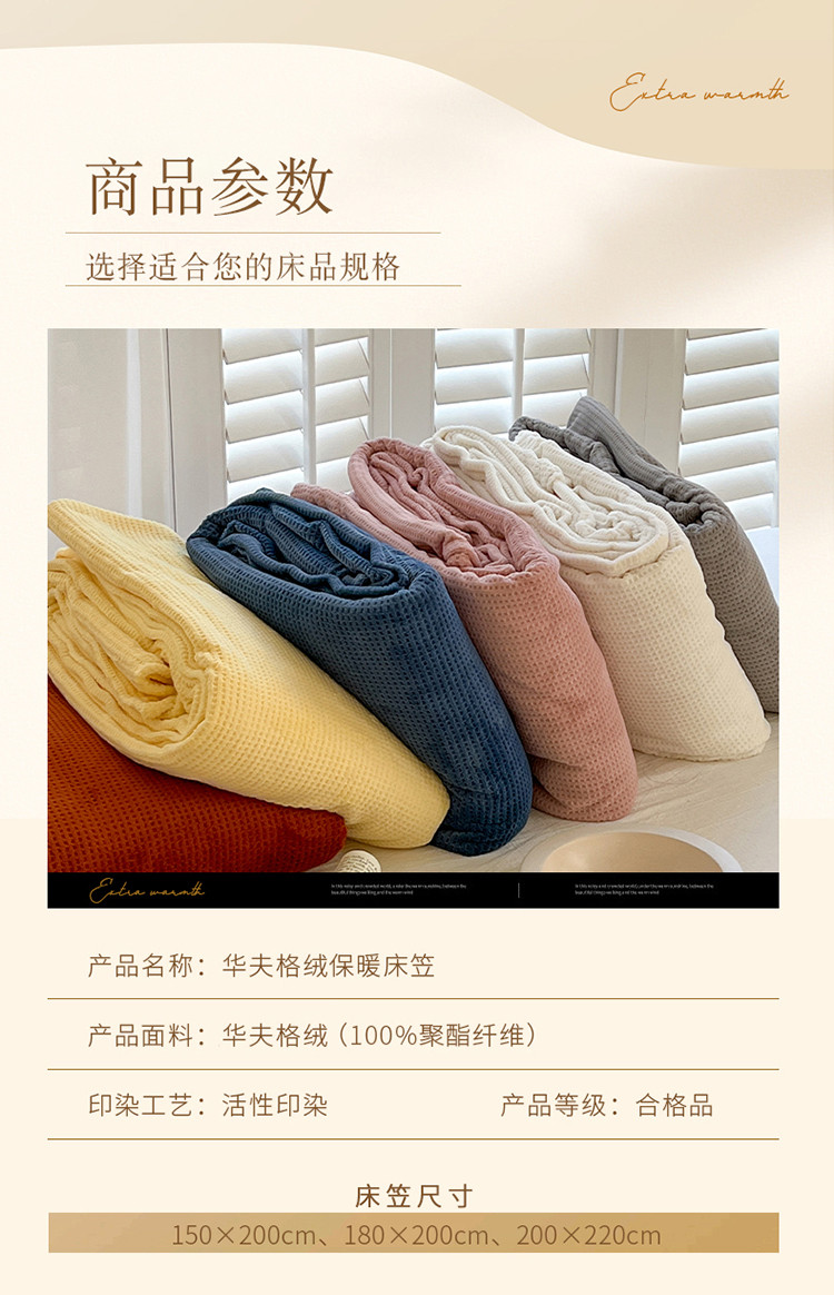 商品名称:(总)时光里 2022新款全消光230克华夫格绒牛奶绒单床笠