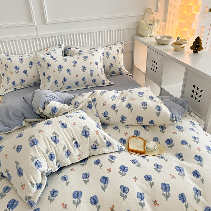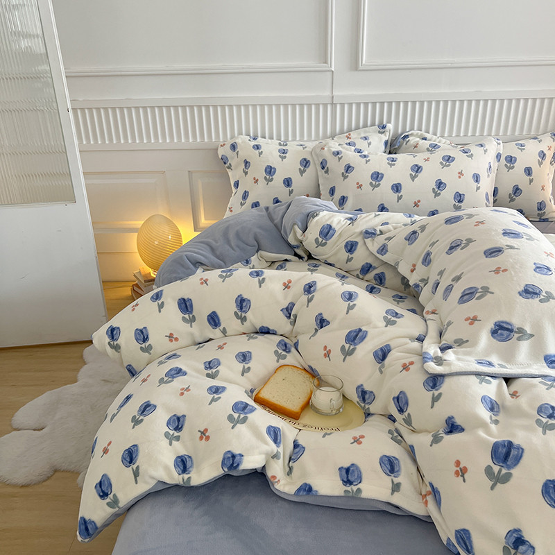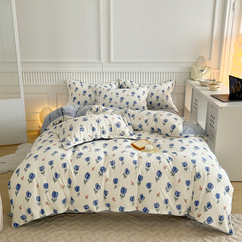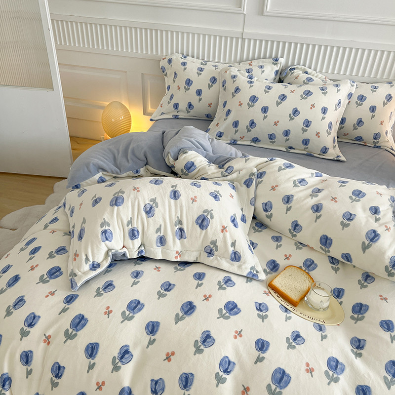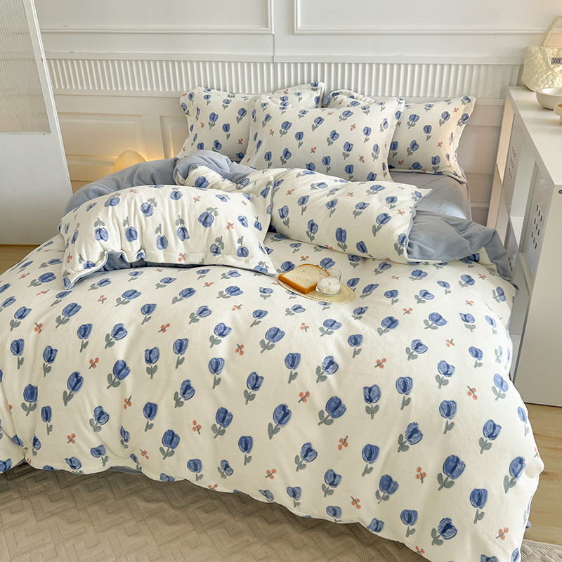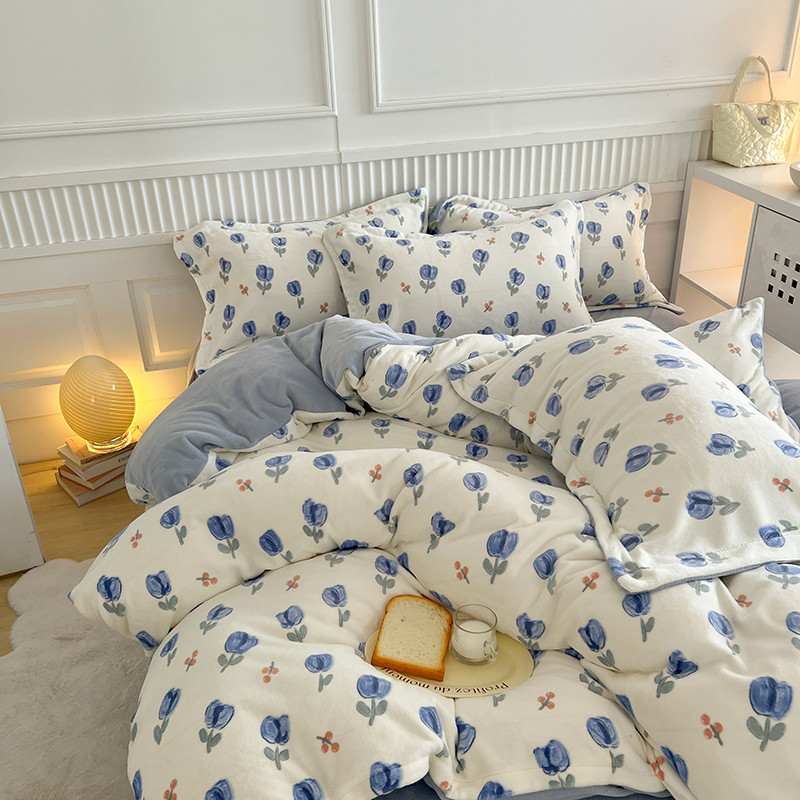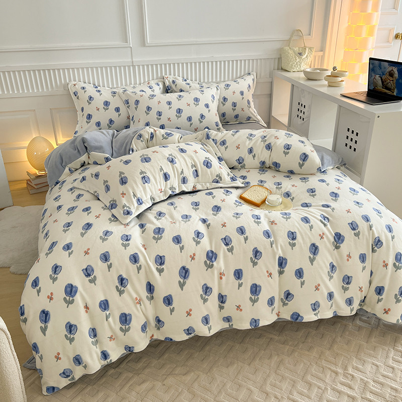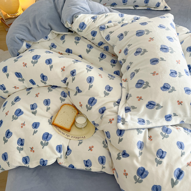 商品名称:木堇家居 2022新款全消光牛奶绒四件套 月光蓝