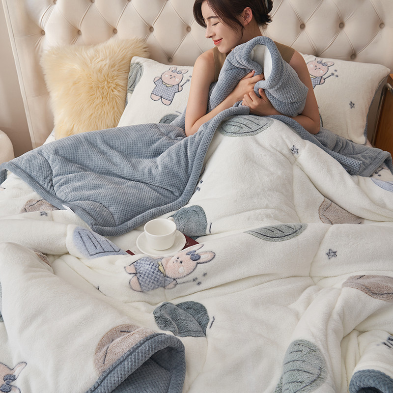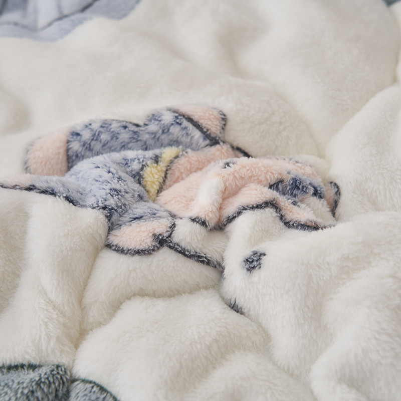 • 91家纺网 家纺一手货源 找家纺 21度C  新款保暖牛奶绒雪花绒贝贝绒系列复合被盖毯 萌兔魔法
