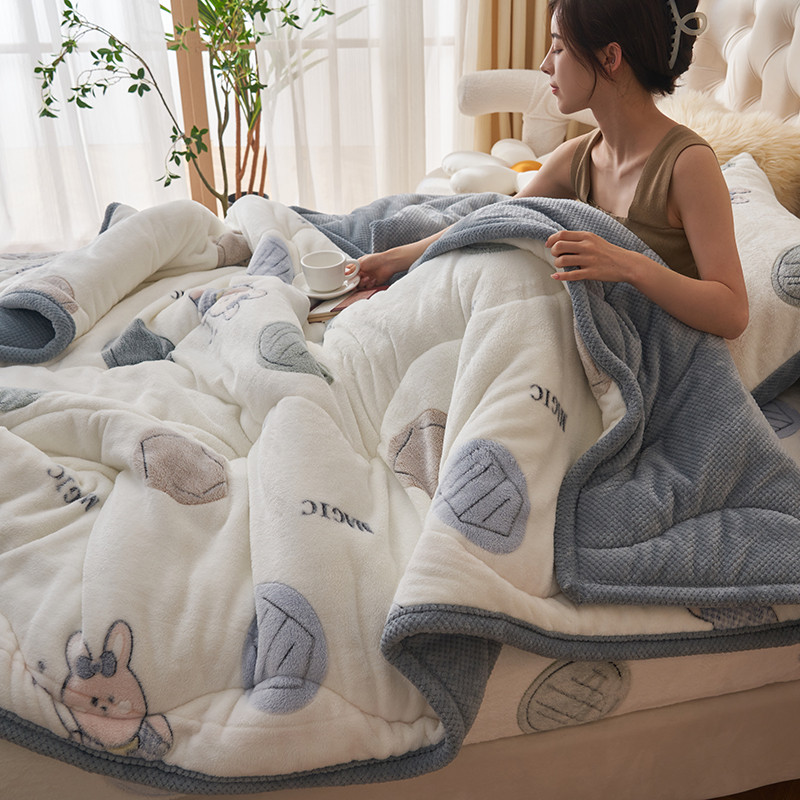 21度C 新款保暖牛奶绒雪花绒贝贝绒系列复合被盖毯 萌兔魔法