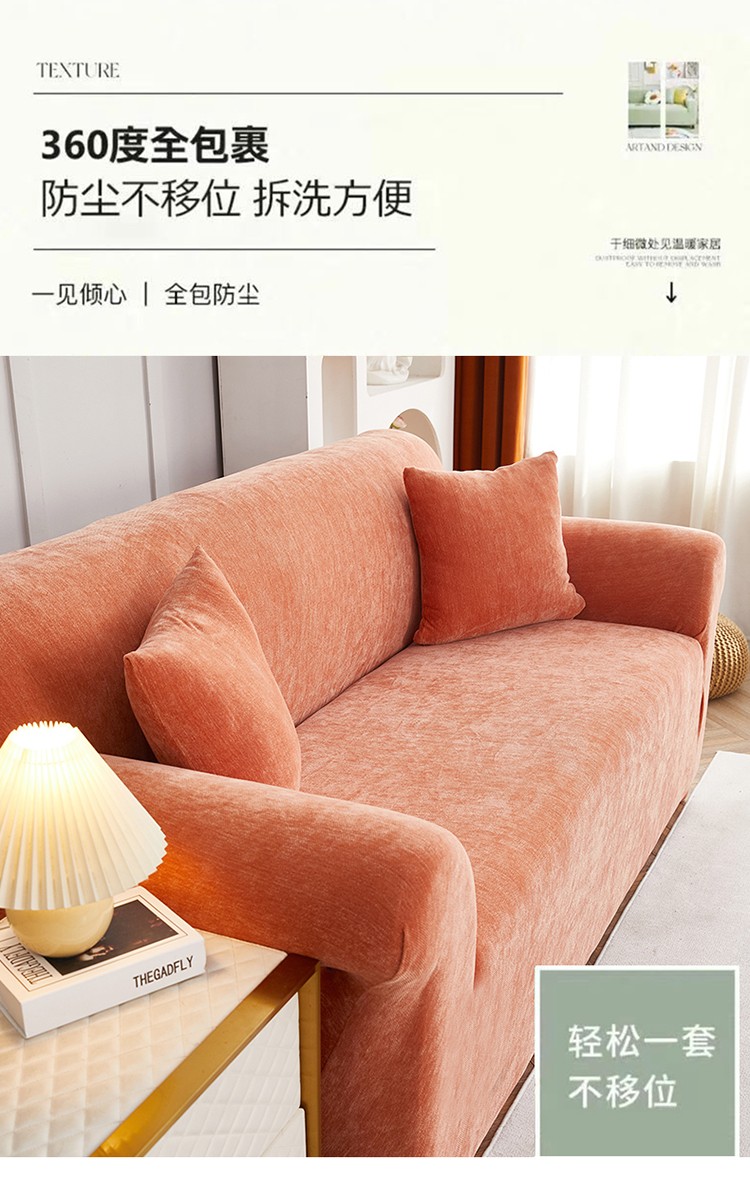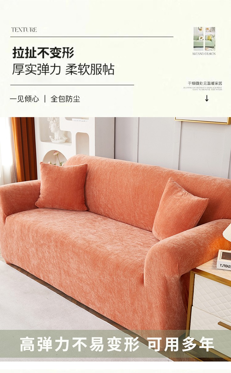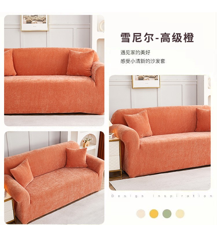 逐日沙发套2023加厚雪尼尔纯色系列三人沙发套雪尼尔-高级橙