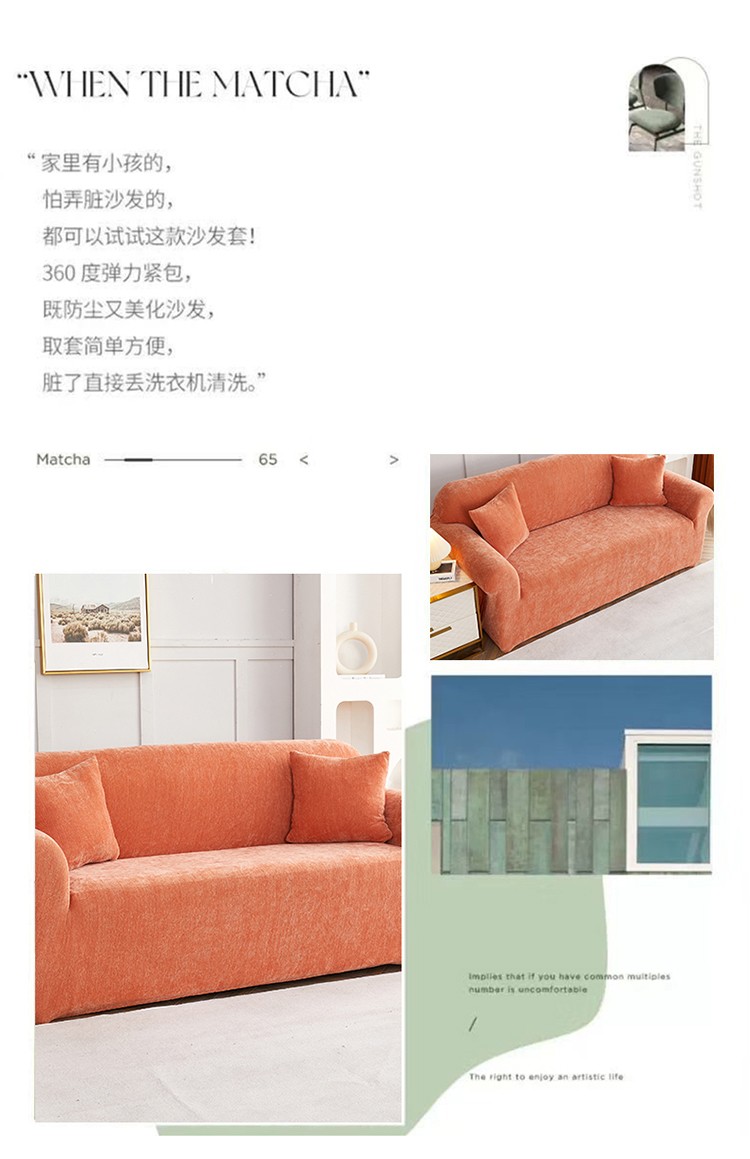 商品名称:逐日沙发套2023加厚雪尼尔纯色系列三人沙发套雪尼尔-高级橙