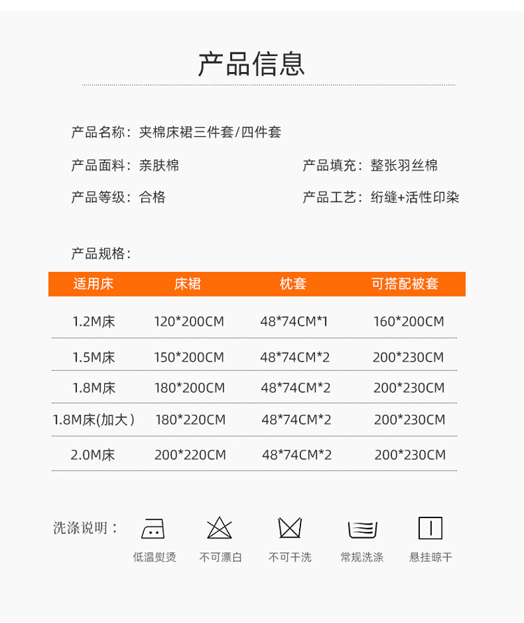 1.8米加大床裙(床裙180*220cm) 四件套 | ¥87.00 |