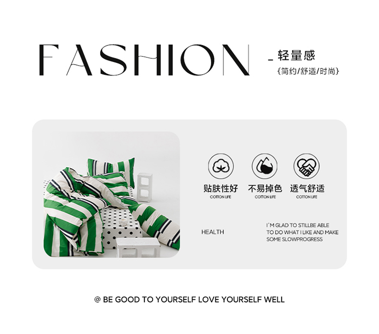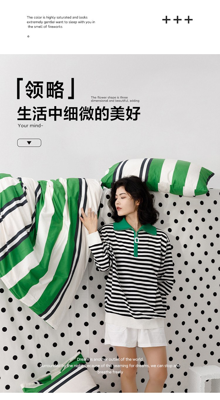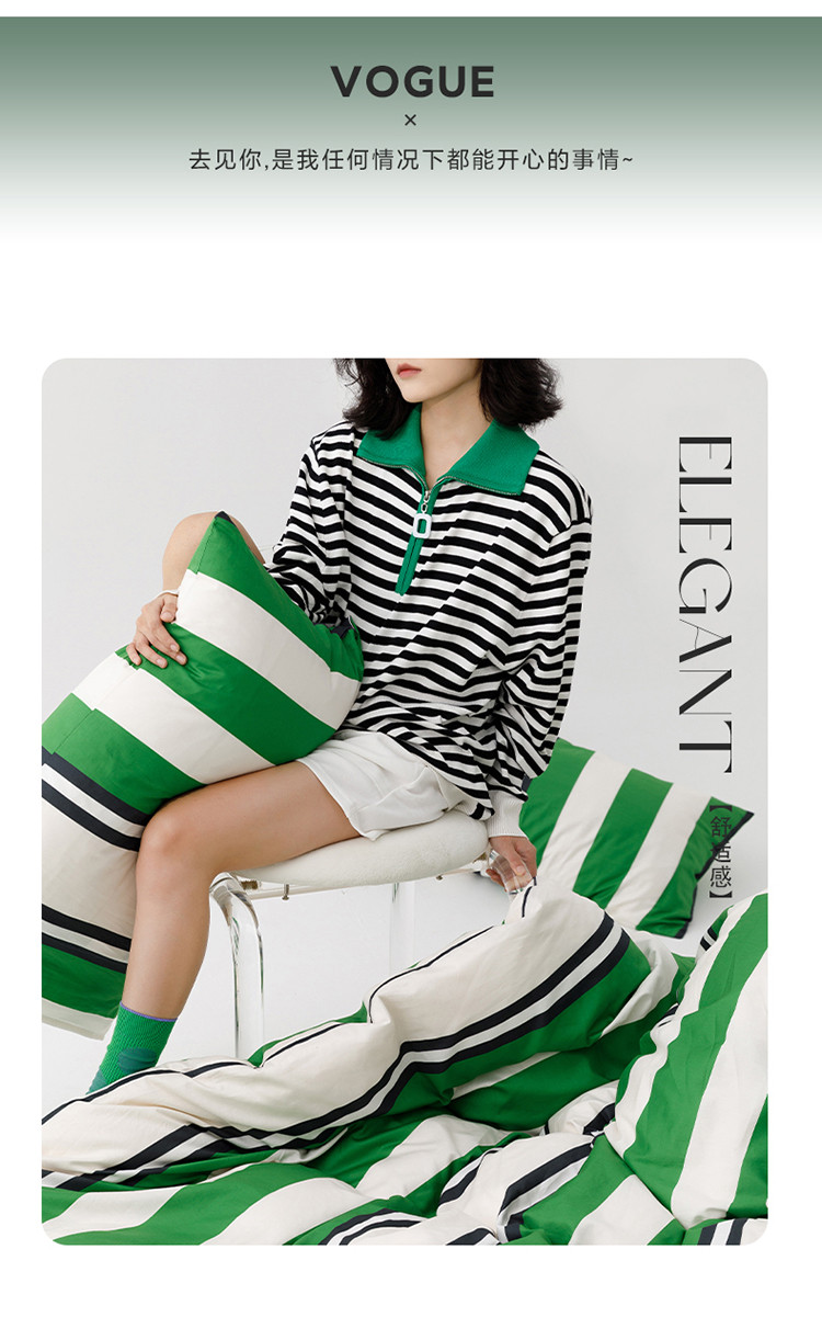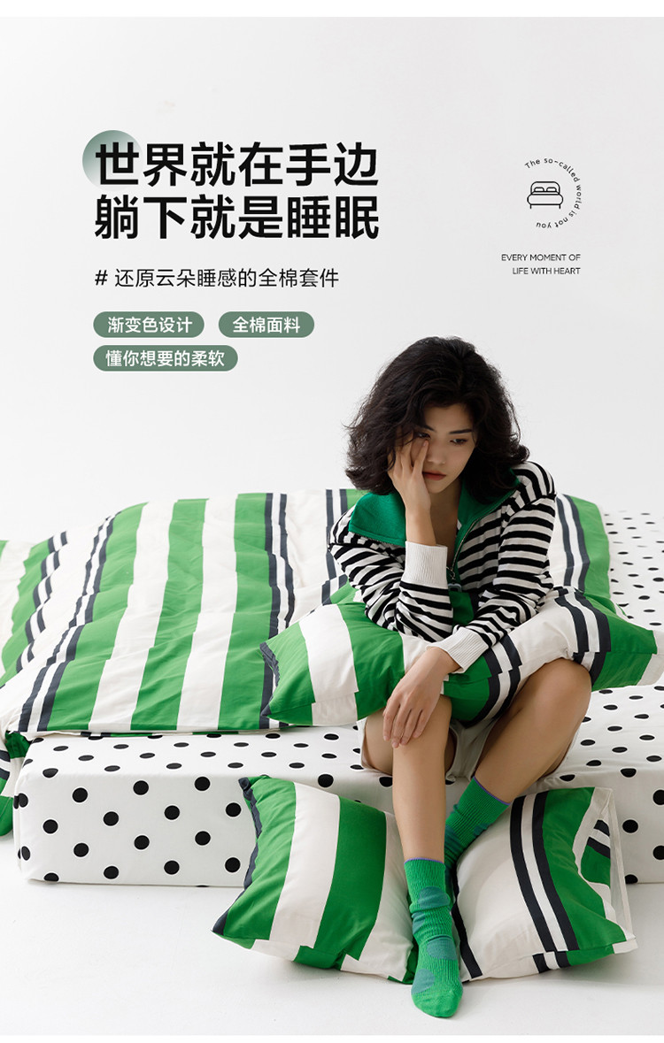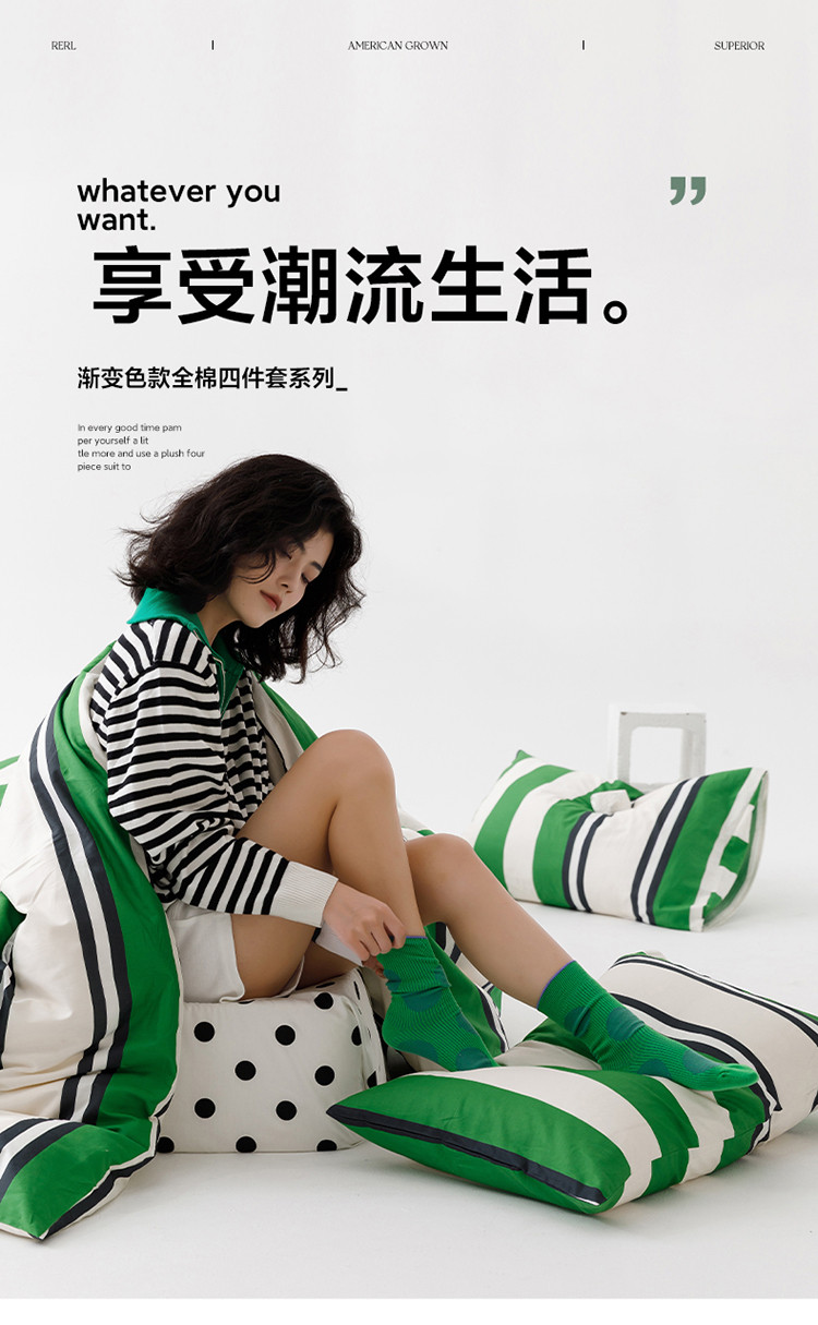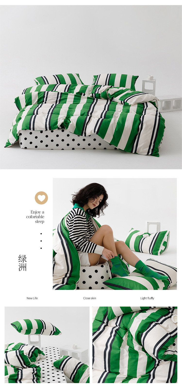 商品名称:雅居纺 2023新款13070黑白系全棉四件套 绿洲