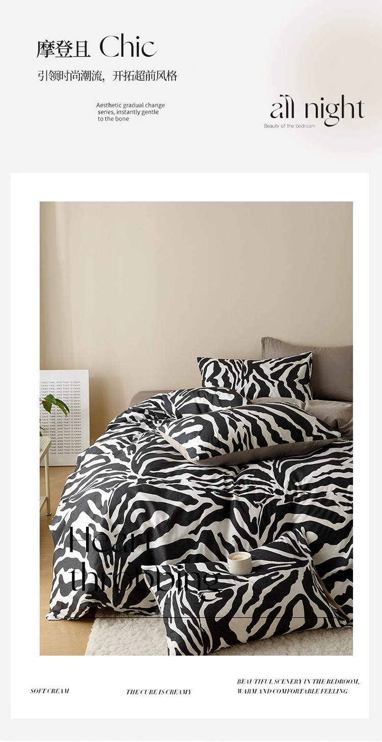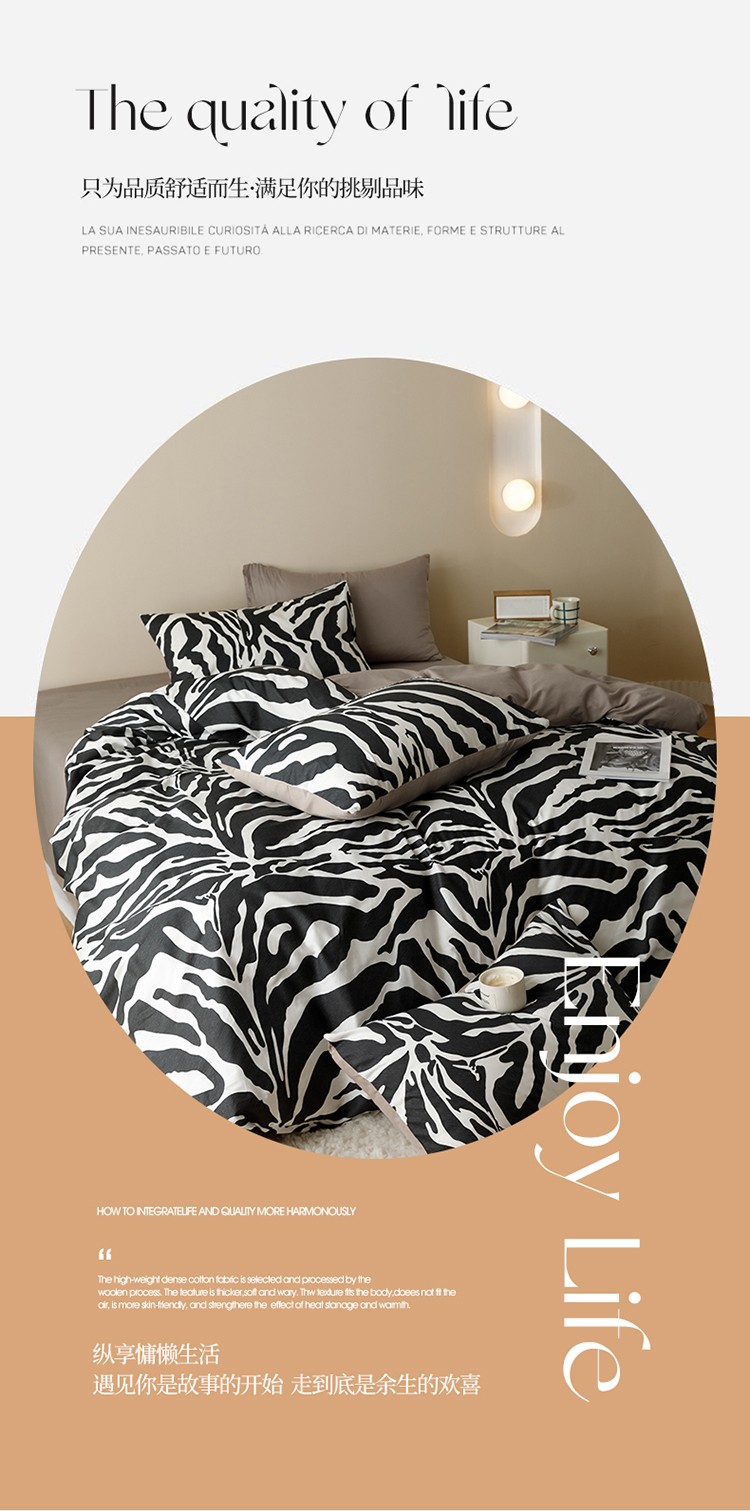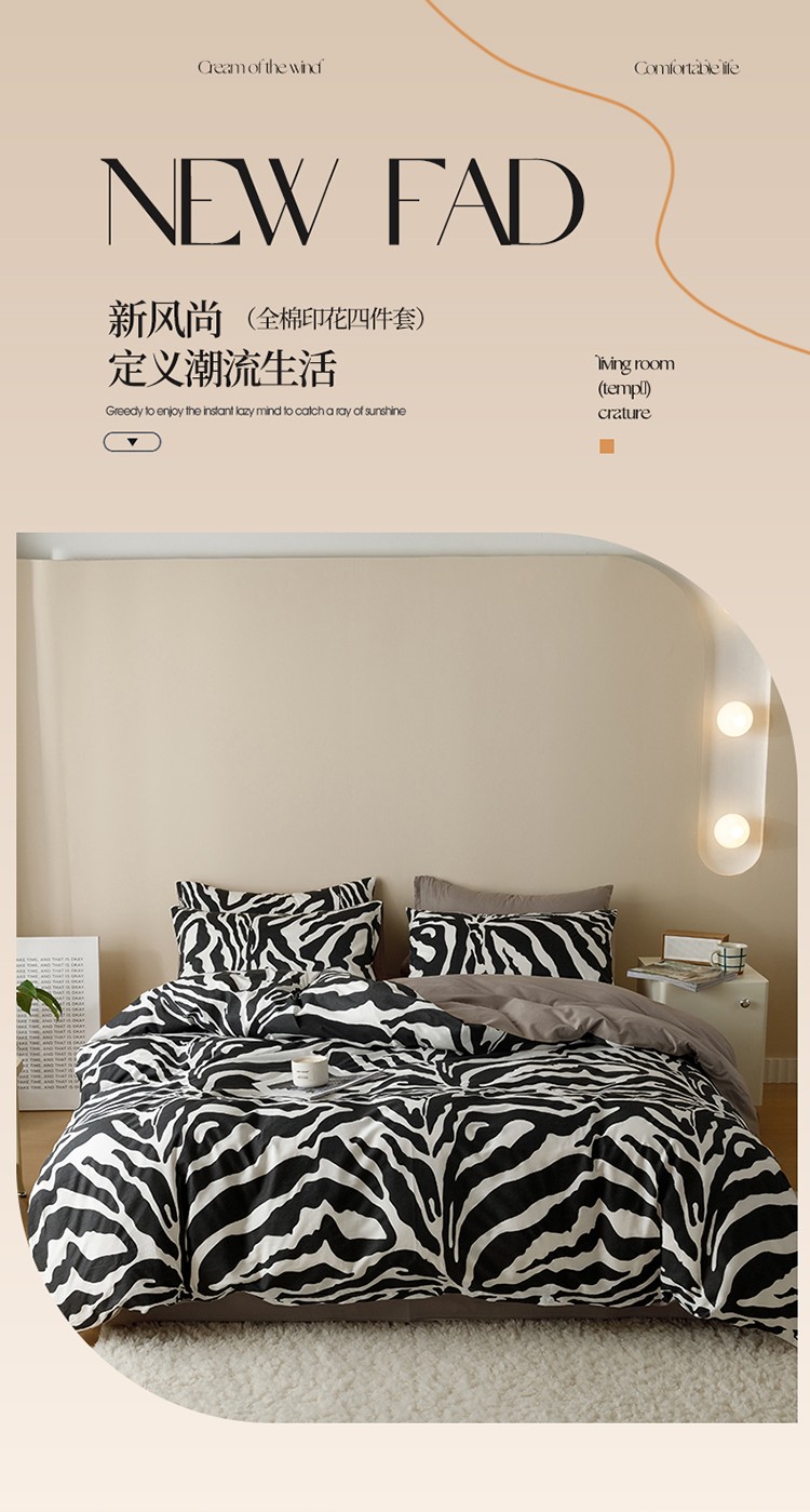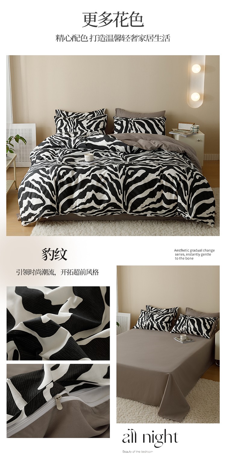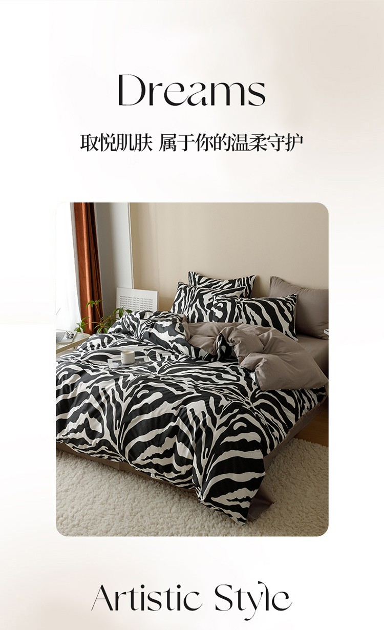 蓝邻家纺 2023新款全棉印花四件套简约系类四件套 豹纹