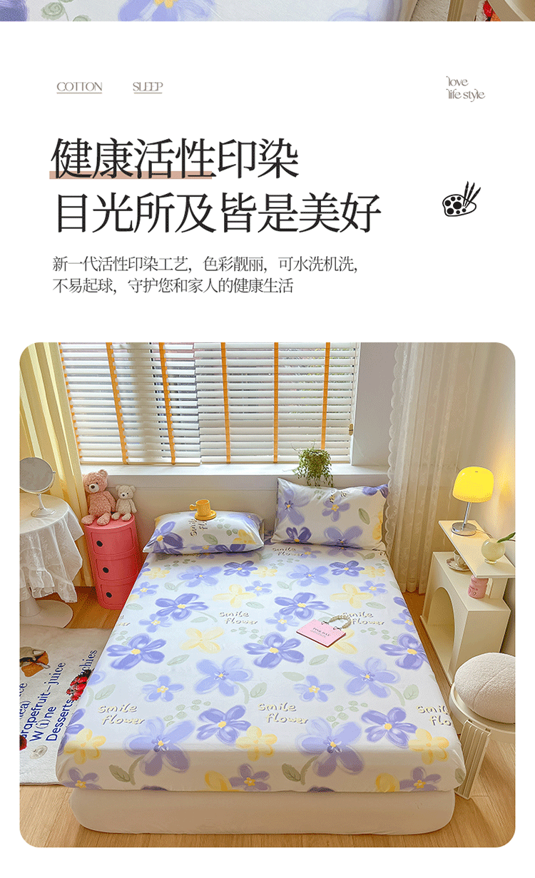2023年新款全棉印花单品系列-单床笠 微笑花