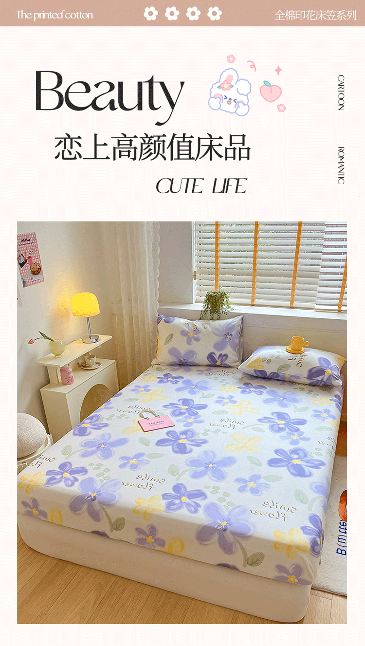 商品名称:2023年新款全棉印花单品系列-单床笠 微笑花