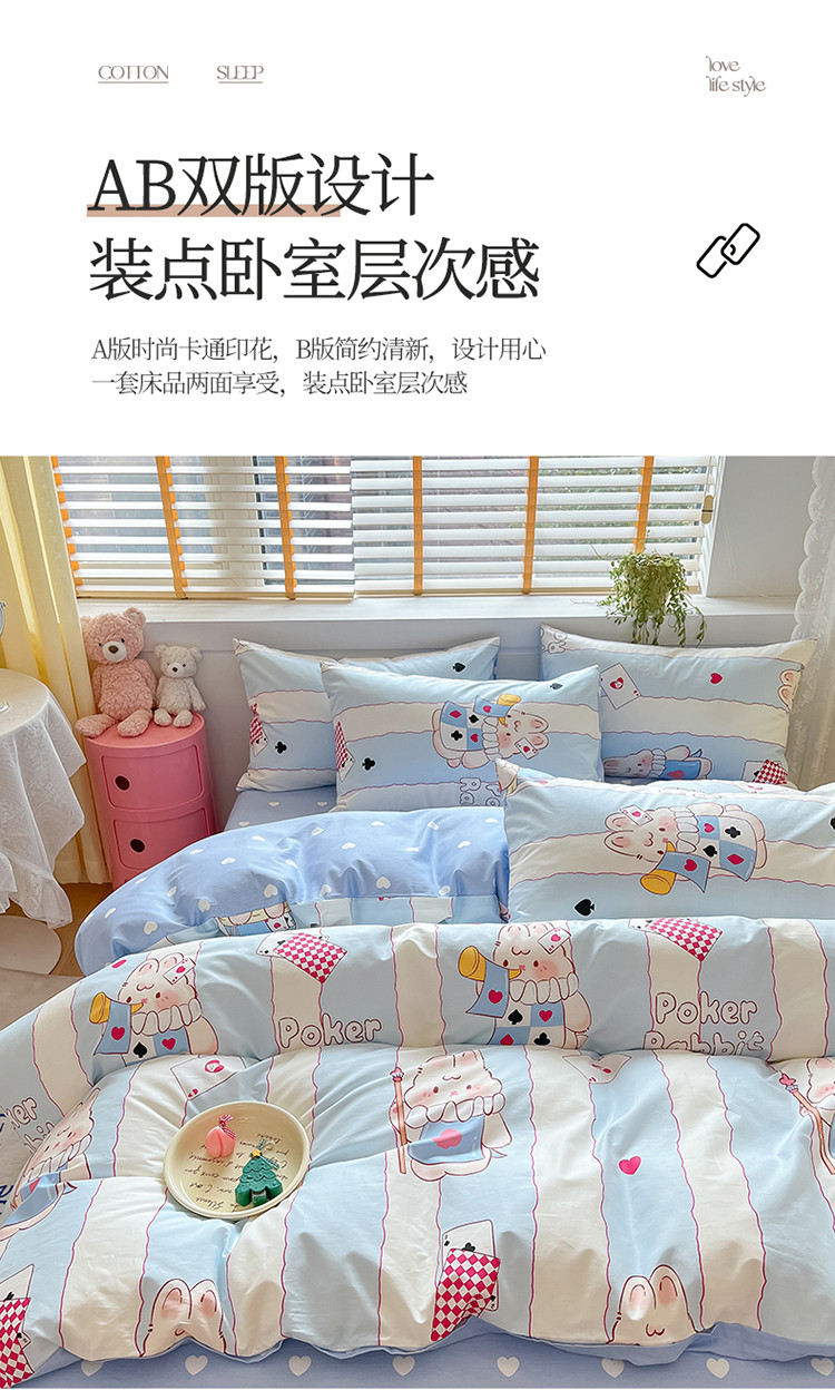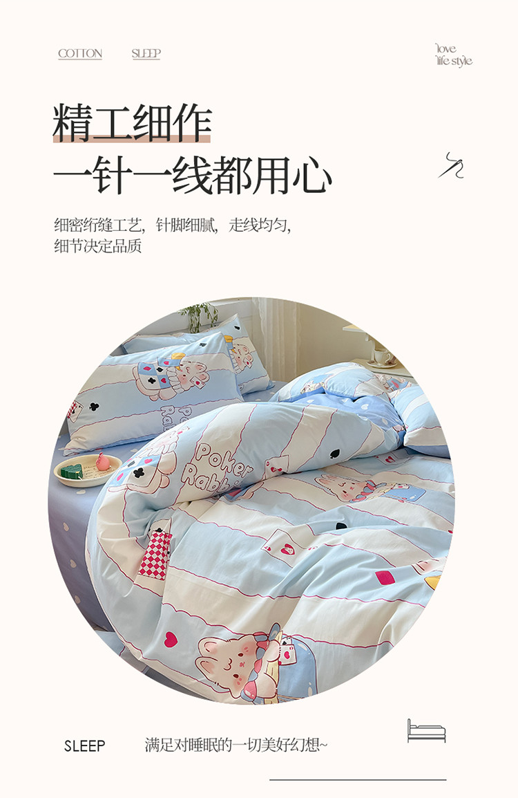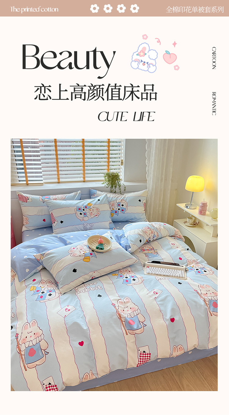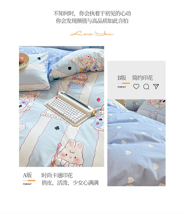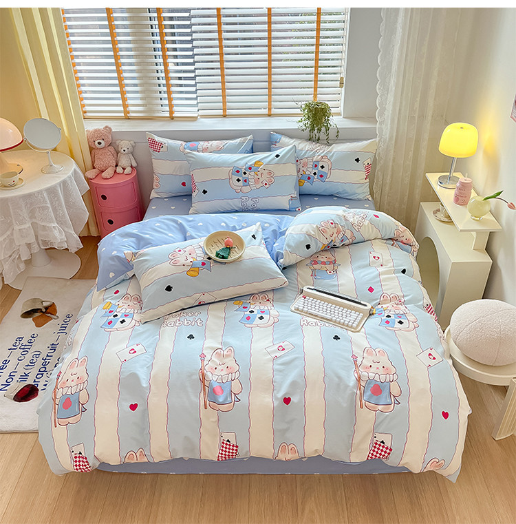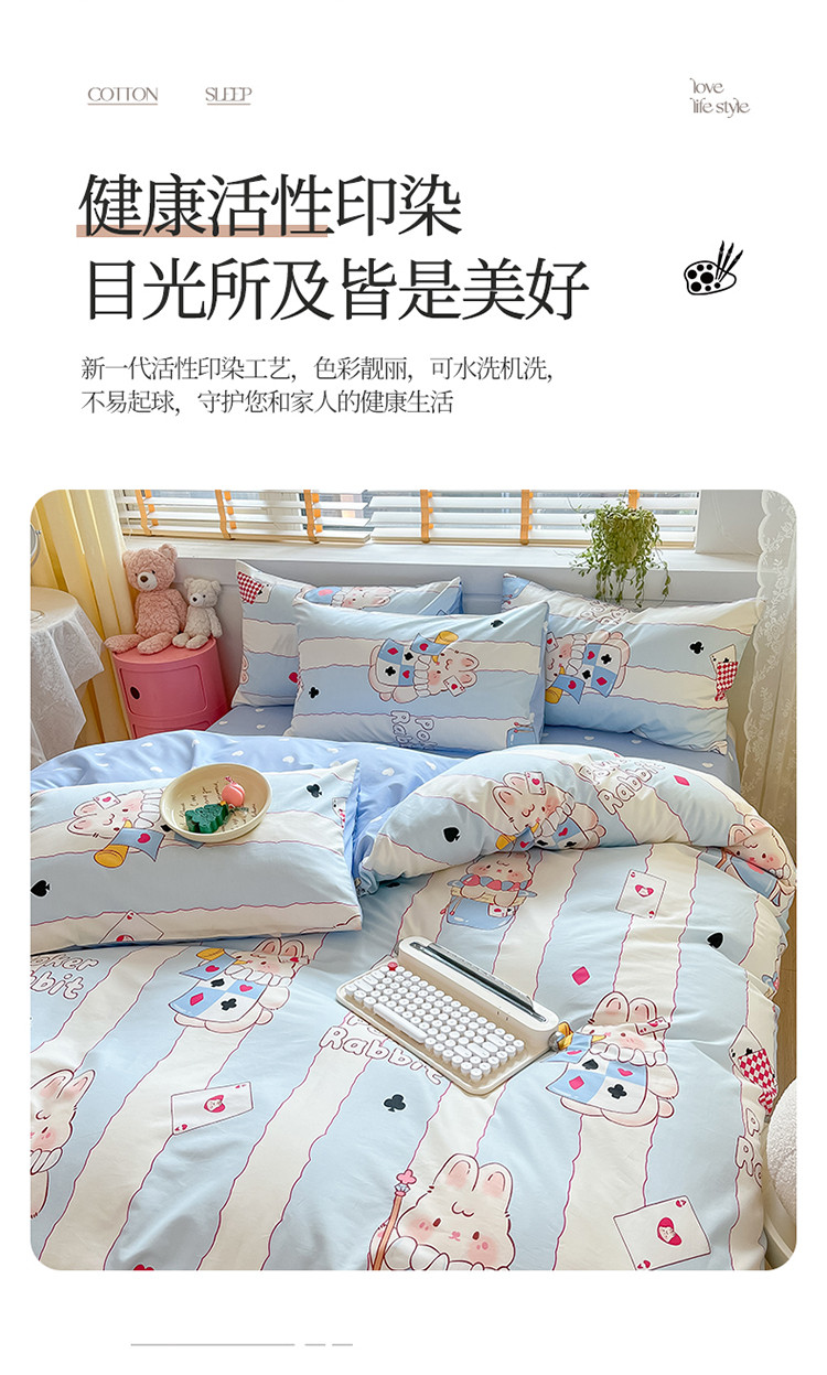 (总)蓝邻家纺 2024新款小清新印花全棉四件套学生宿舍三件套,茶园兔,风翩,机灵兔熊,可妮露,藤蔓兔,筱薇