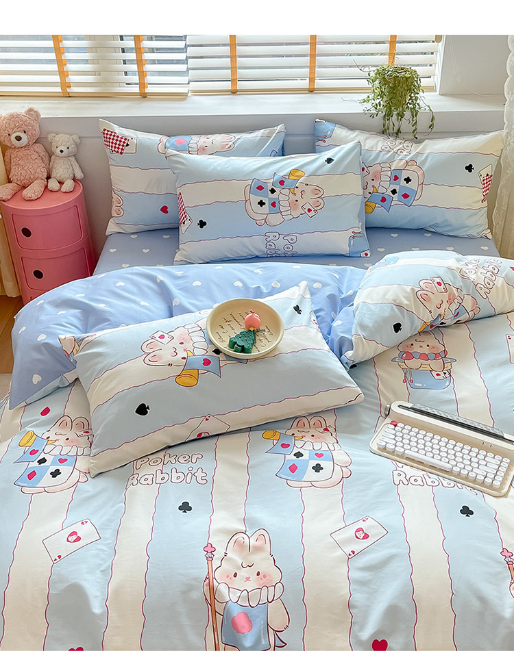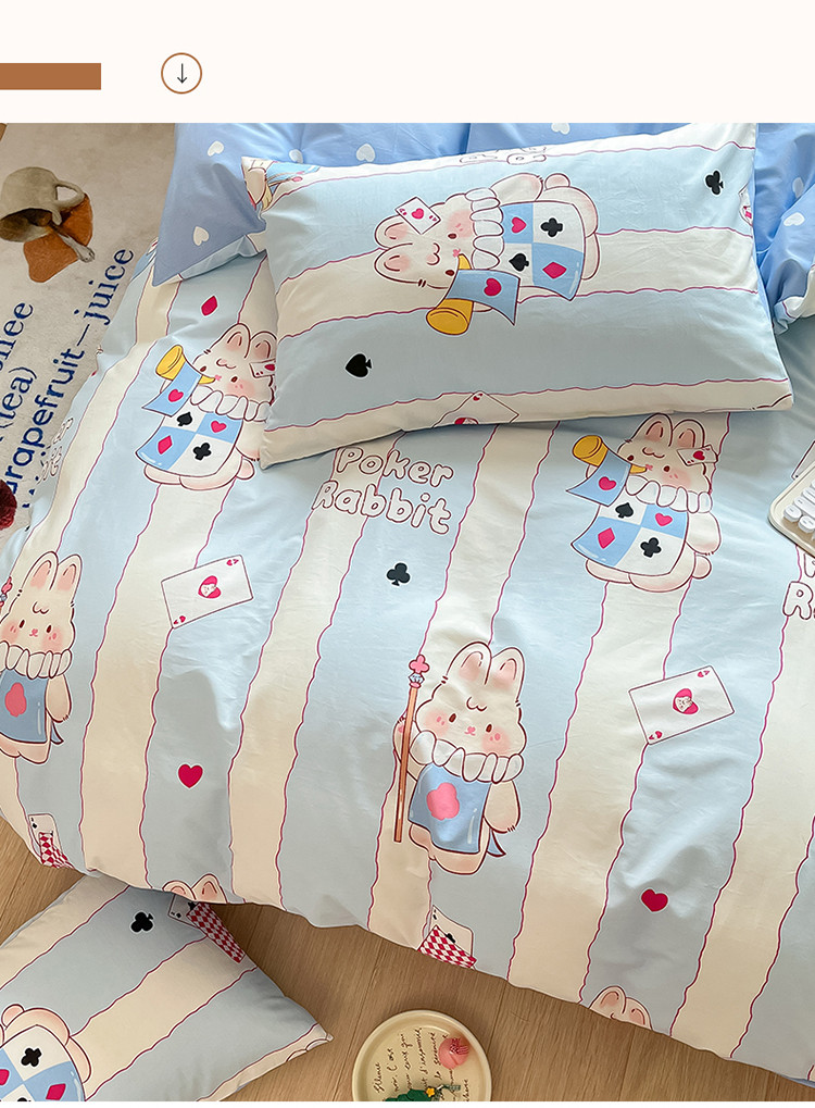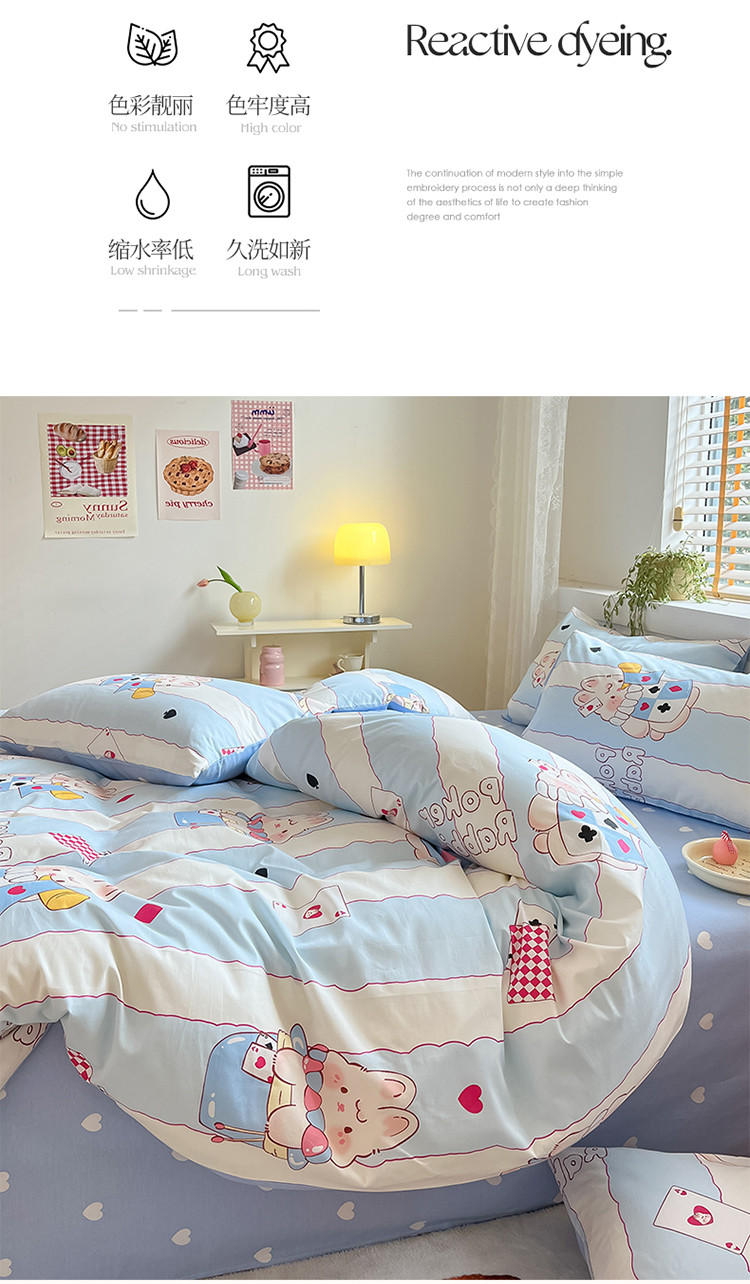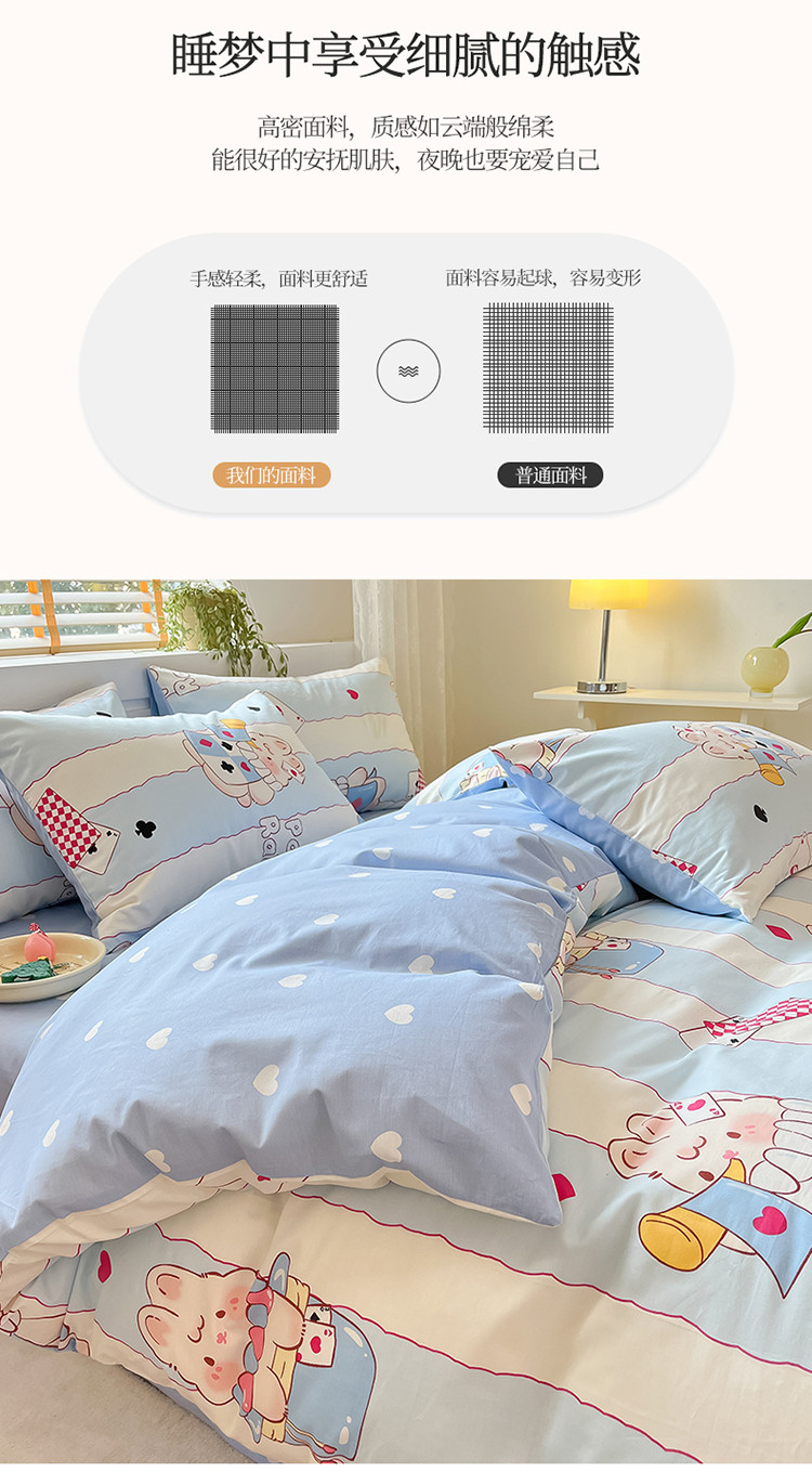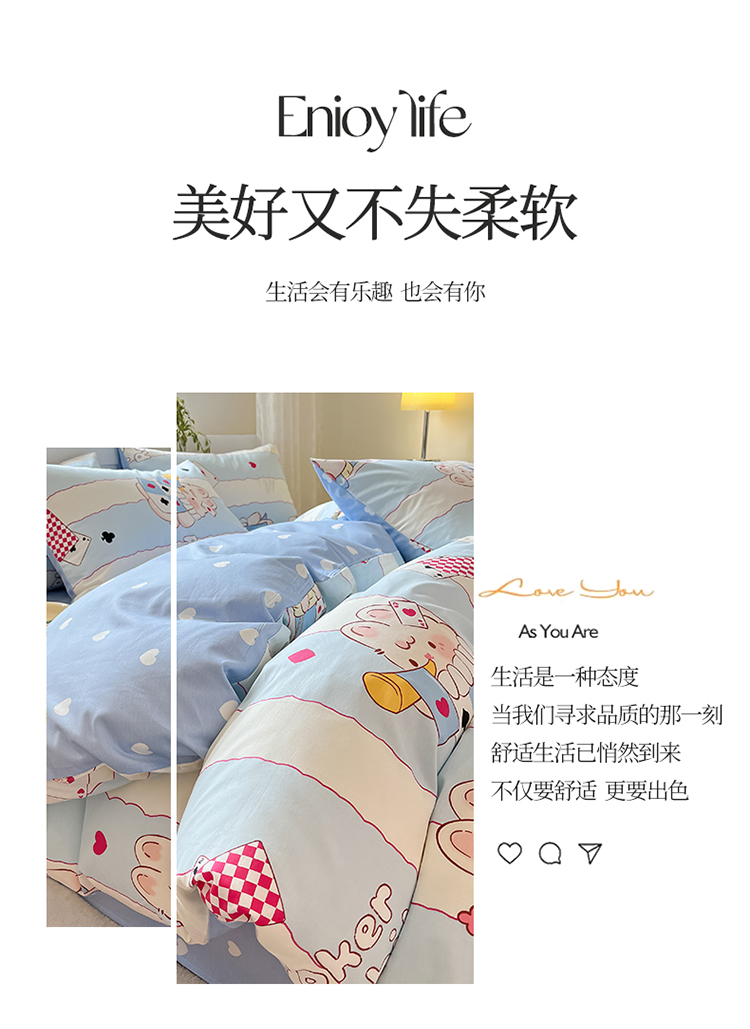 (总)蓝邻家纺 2024新款小清新印花全棉四件套学生宿舍三件套,茶园兔,风翩,机灵兔熊,可妮露,藤蔓兔,筱薇