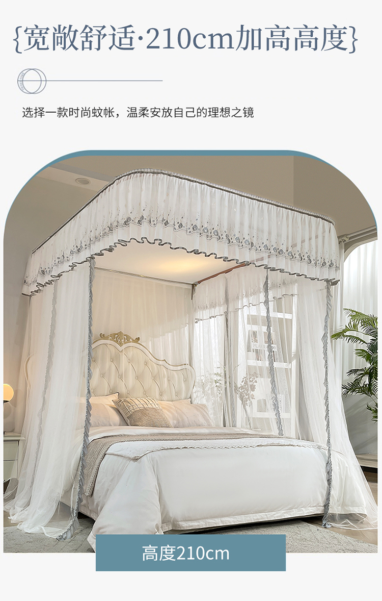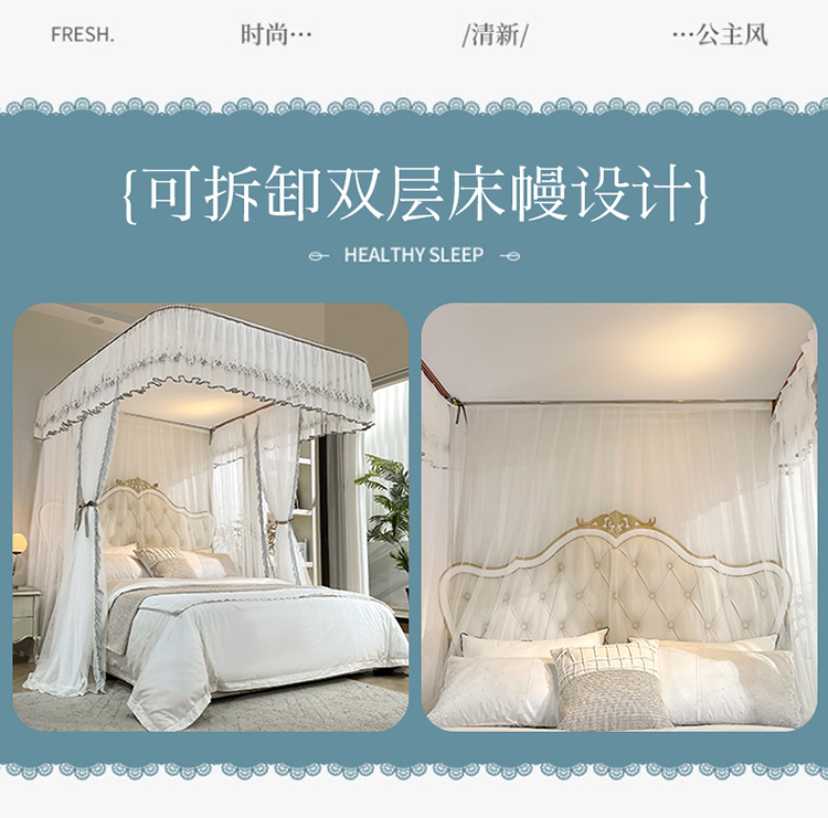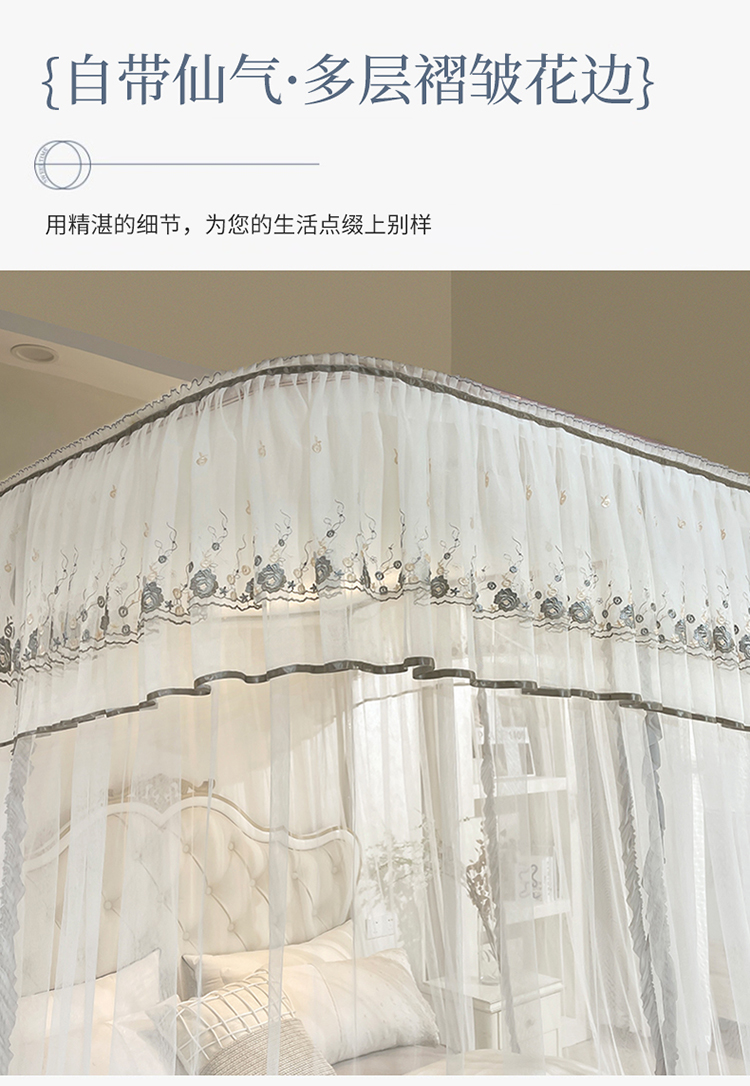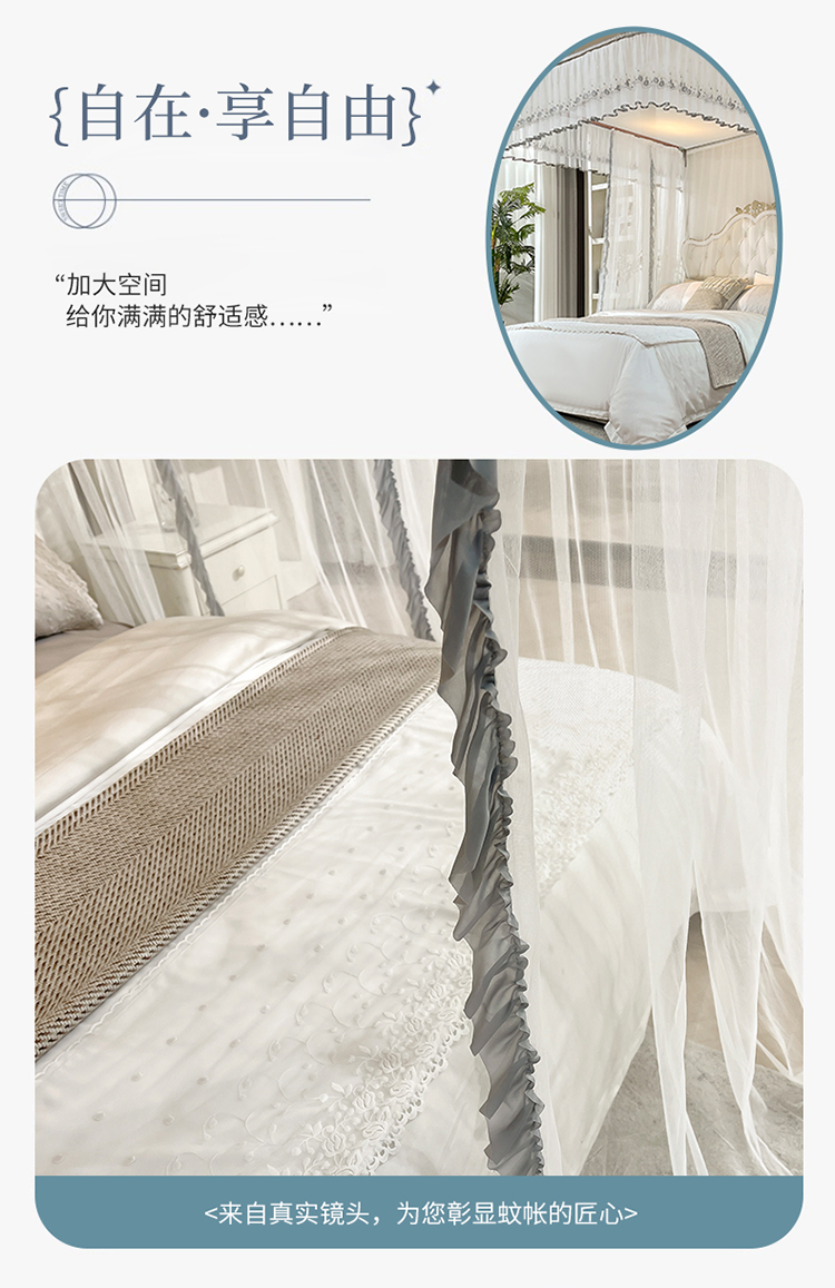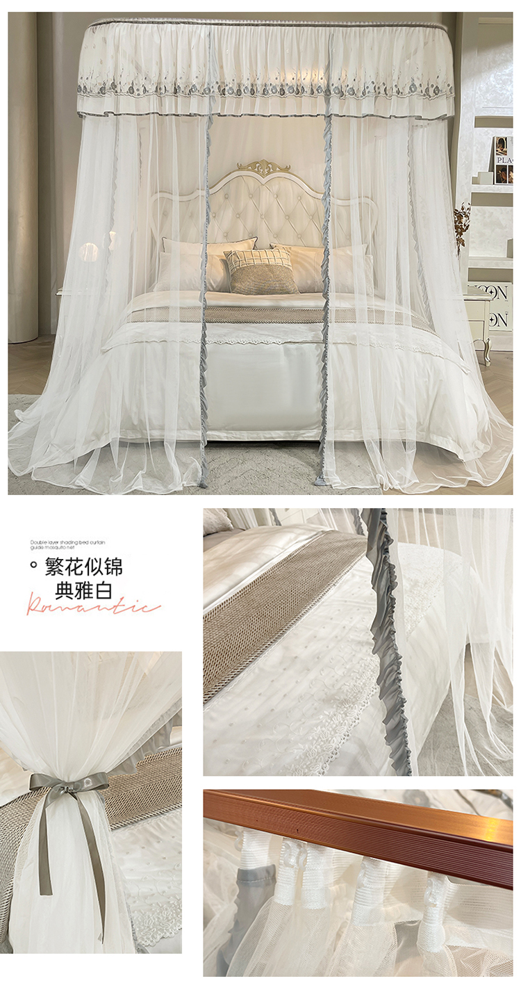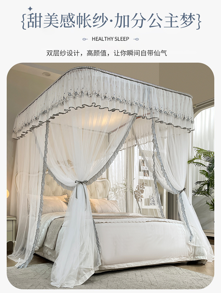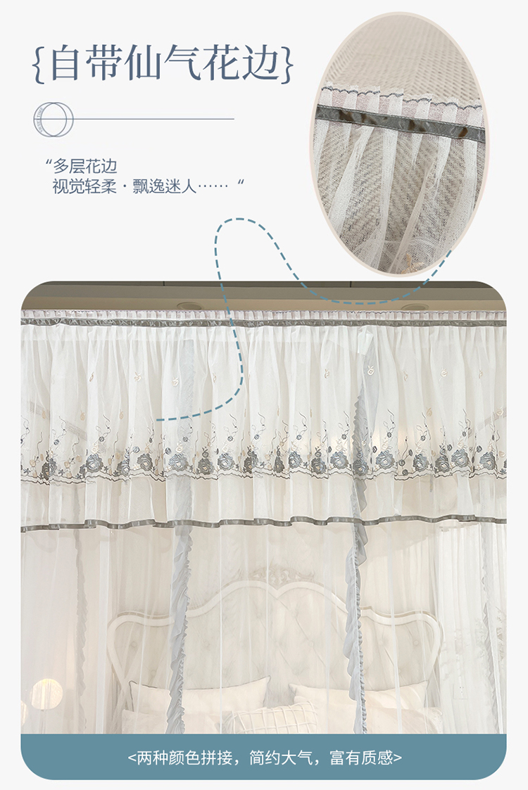 (总)梦尔佳蚊帐 2025新款双层花边床笠式三开门蚊帐-858怜香惜玉系列,优雅黄,富贵白,高级灰,温柔玉,清爽蓝