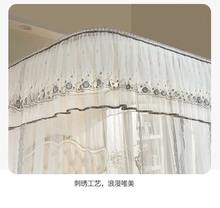 (总)梦尔佳蚊帐2025新款TU绣花蚊帐-859窈窕淑女系列,温馨如玉,高雅银灰,清爽水蓝,宛如白霞,喜庆粉红,优雅嫩黄