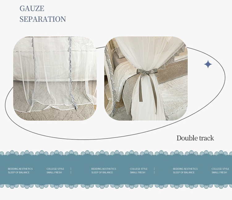 (总)2025新款双层花边全包围床笠款三开门蚊帐-幽梦星辰,奶黄,藕玉,颜淡蓝