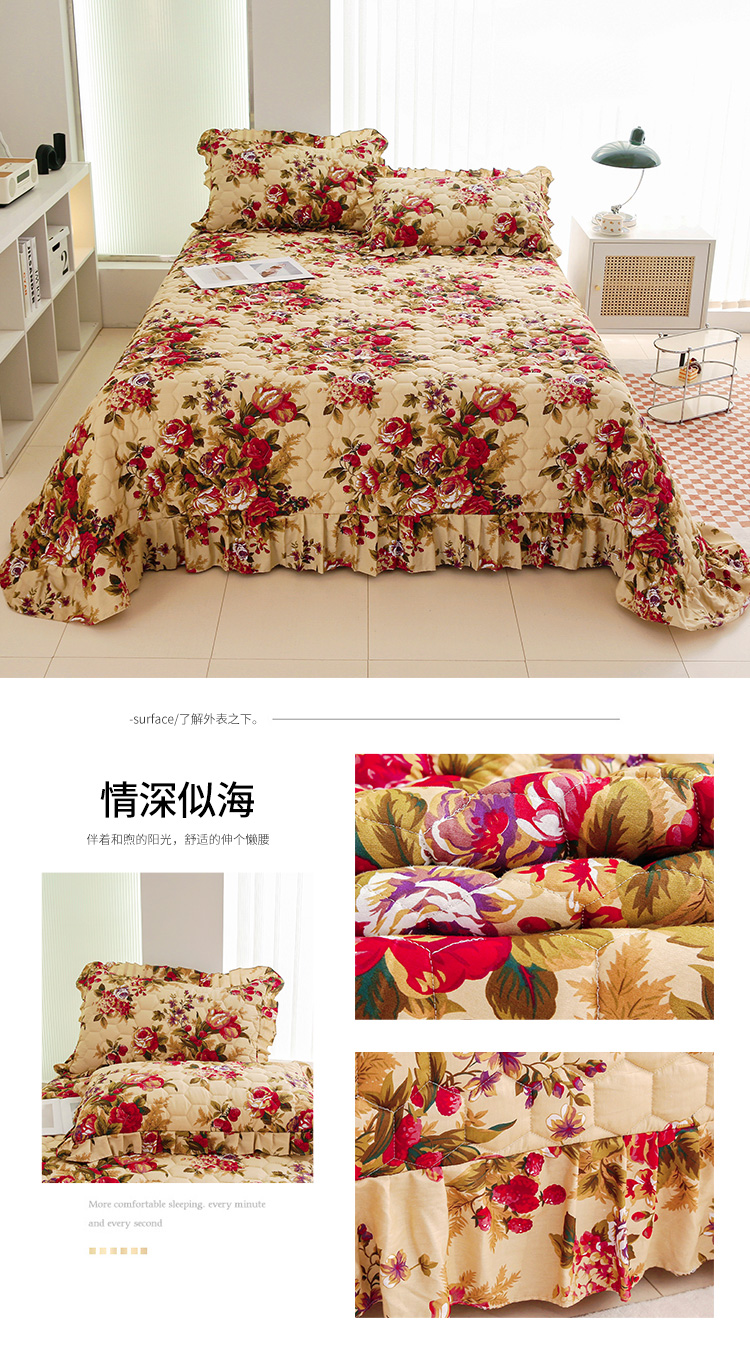 • 91家纺网 家纺一手货源 找家纺 情煊家纺 2023新款全棉夹棉印花床盖三件套(可定制尺寸) 情深似海