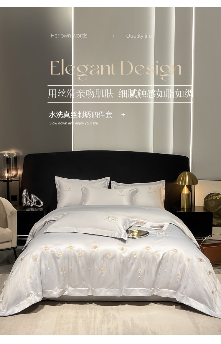 绒世界 2024新款水洗真丝爱媛四件套系列 爱媛-银灰