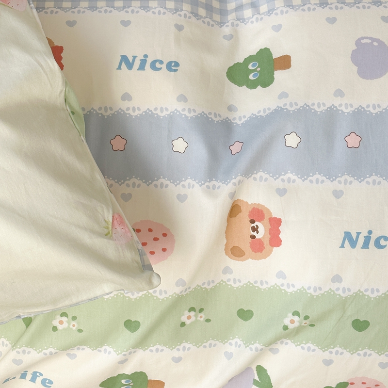 (总)昔可 2023新款学生季卡通普通款四件套,彩色气球熊,彩条恐龙,憨憨熊,花蜜小兔,蘑菇兔,圈圈草莓,蔬菜小兔,郁金香小萌狗