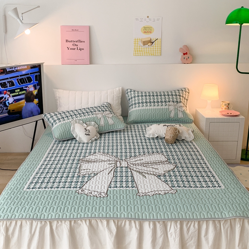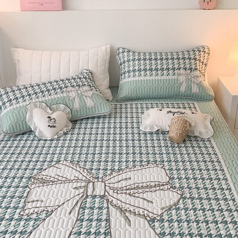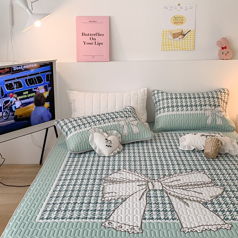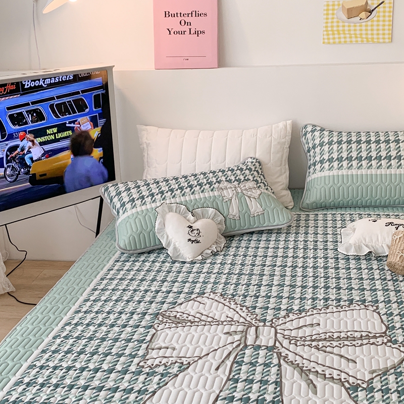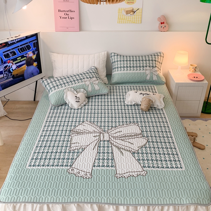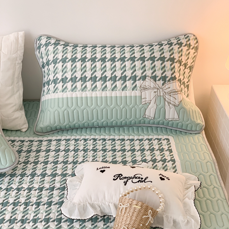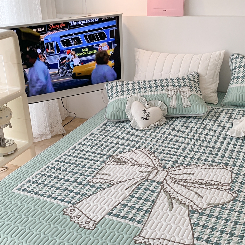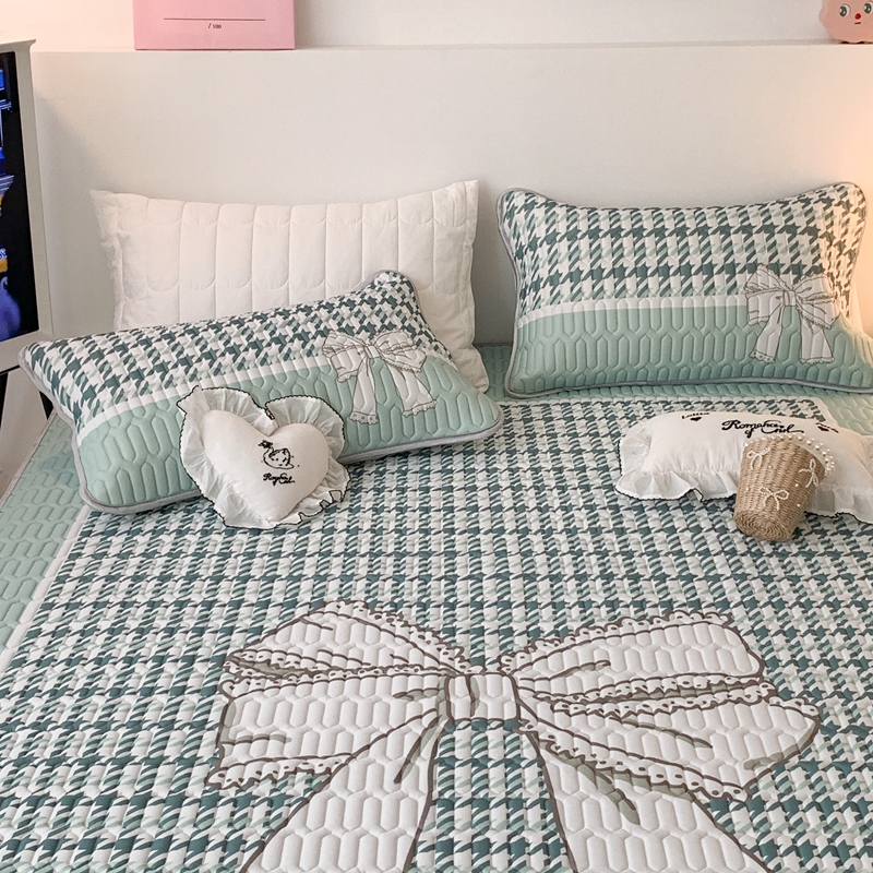 商品名称:昔可2023新款大版乳胶凉席第一批 绿色千鸟格蝴蝶结