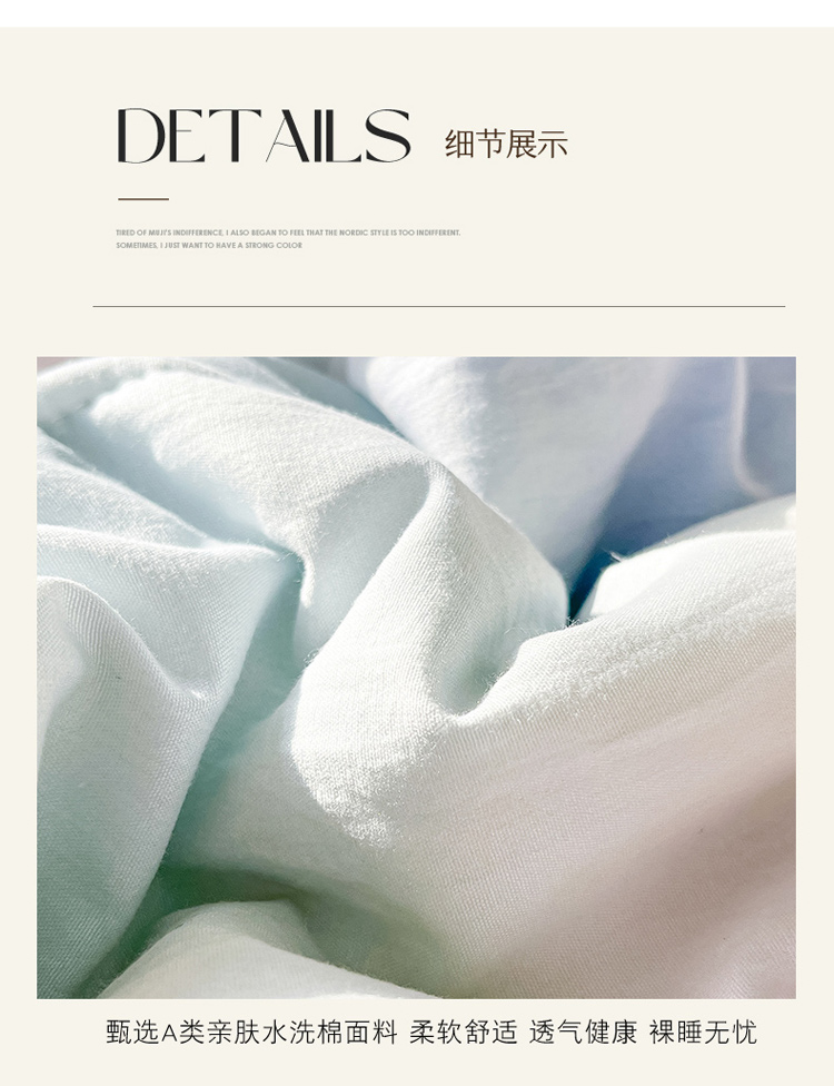 (总) 寐居 2023新款双拼全棉水洗棉纯色四件套,ins风-草绿色,ins风-湖绿色,ins风-裸粉色,ins风-迷雾蓝,ins风-奶油黄,ins风-柠檬黄,ins风-樱花粉,鹅黄+香芋紫,焦糖+卡其,军绿+焦糖,米黄+卡其,米黄+深粉,奶油玉+鹅黄,深粉+湖蓝,深蓝+焦糖,藏青+浅灰,绿+牛油果绿,米黄+浅蓝,抹茶绿+橡木黄,奶油玉+橄榄绿,奶油玉+香芋紫,浅豆沙+浅灰,深蓝+灰