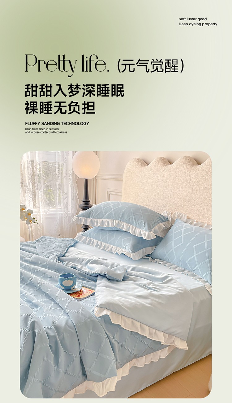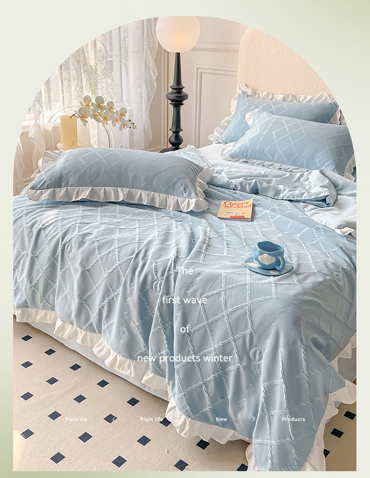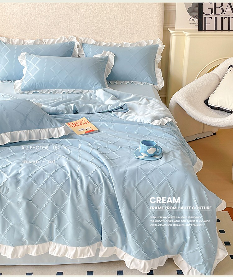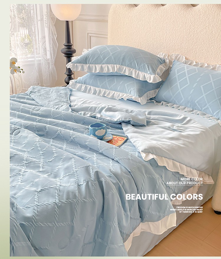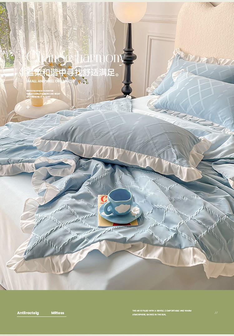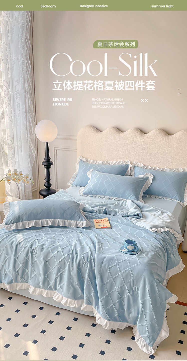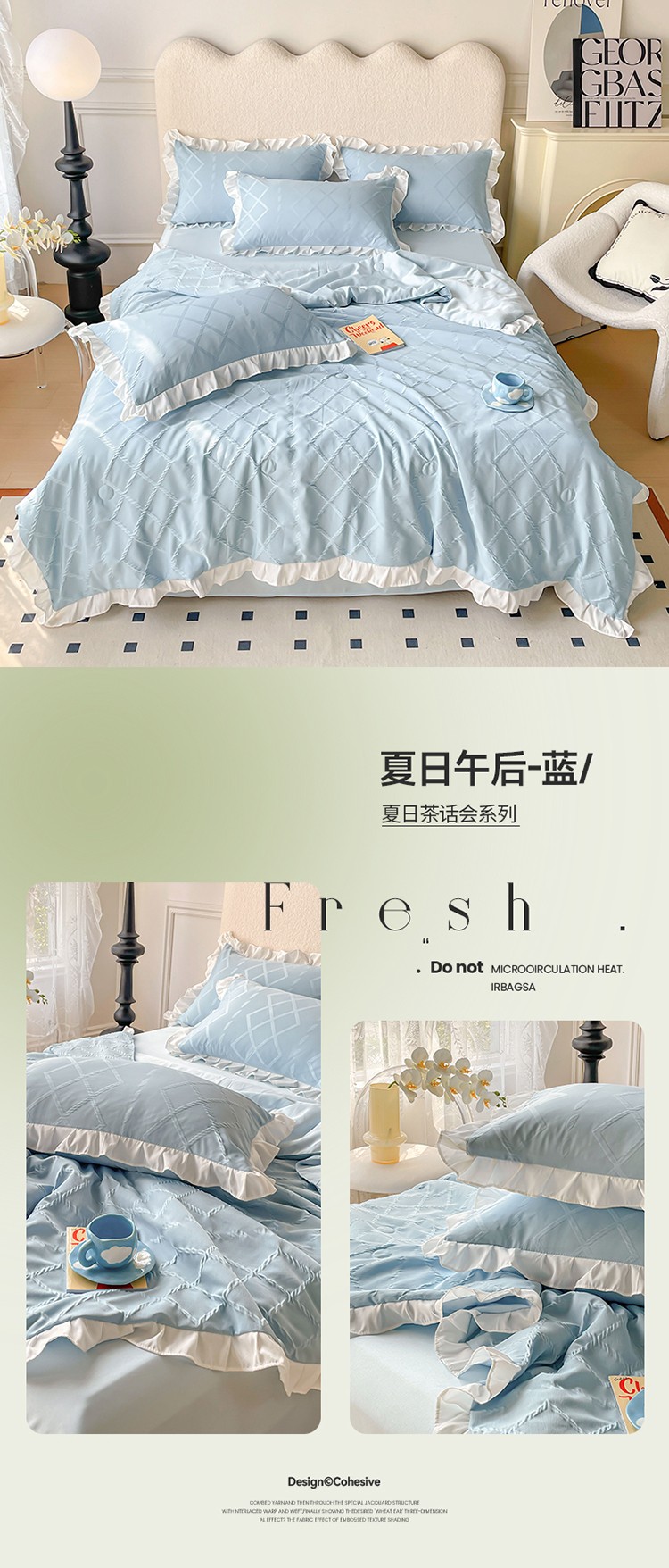 当前位置: 91家纺网 > 商品网购 > 床品套件 > 四件套 > 夏被四件套 > 澳梵2023新款【夏日茶话会】系列-立体提花格夏被四件套 夏日午后-蓝