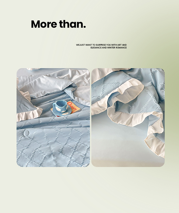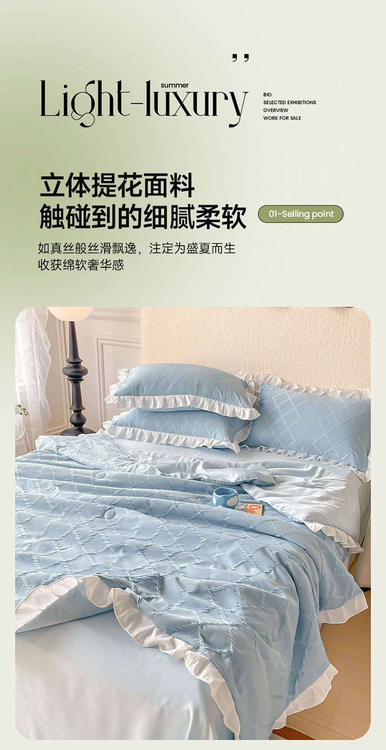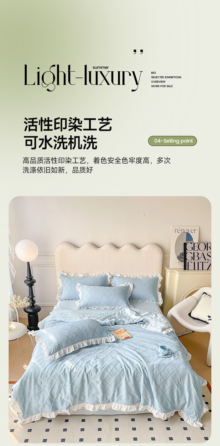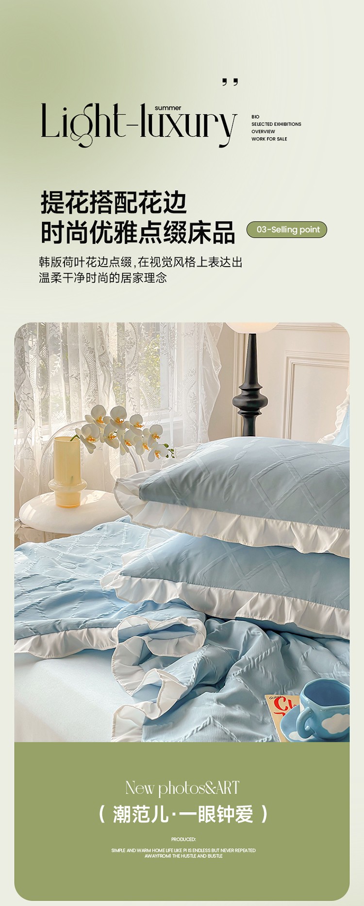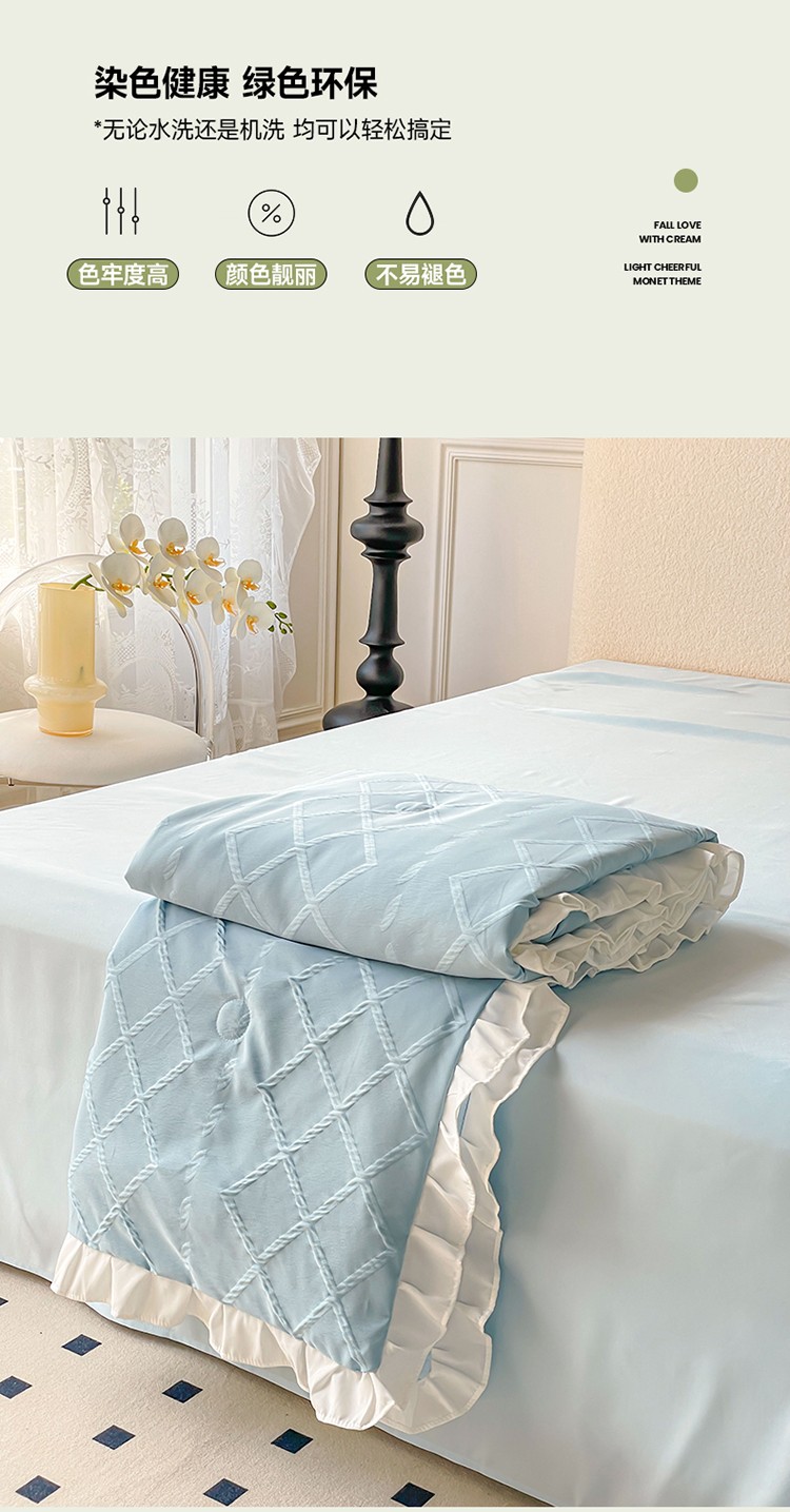 当前位置: 91家纺网 > 商品网购 > 床品套件 > 四件套 > 夏被四件套 > 澳梵2023新款【夏日茶话会】系列-立体提花格夏被四件套 夏日午后-蓝
