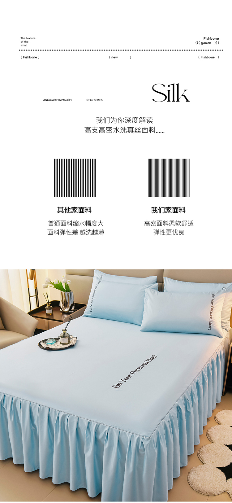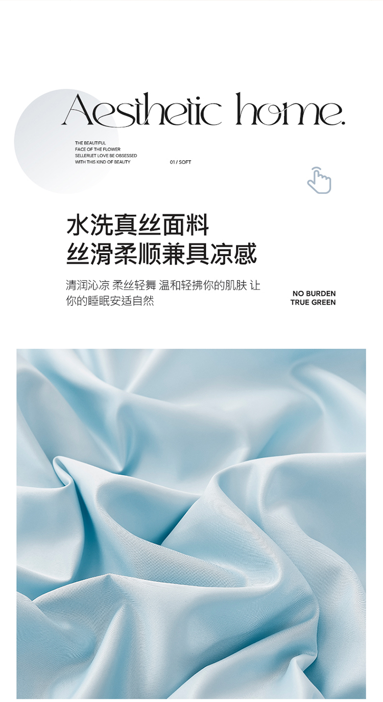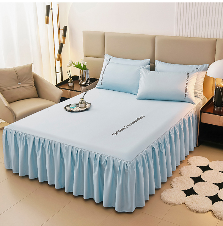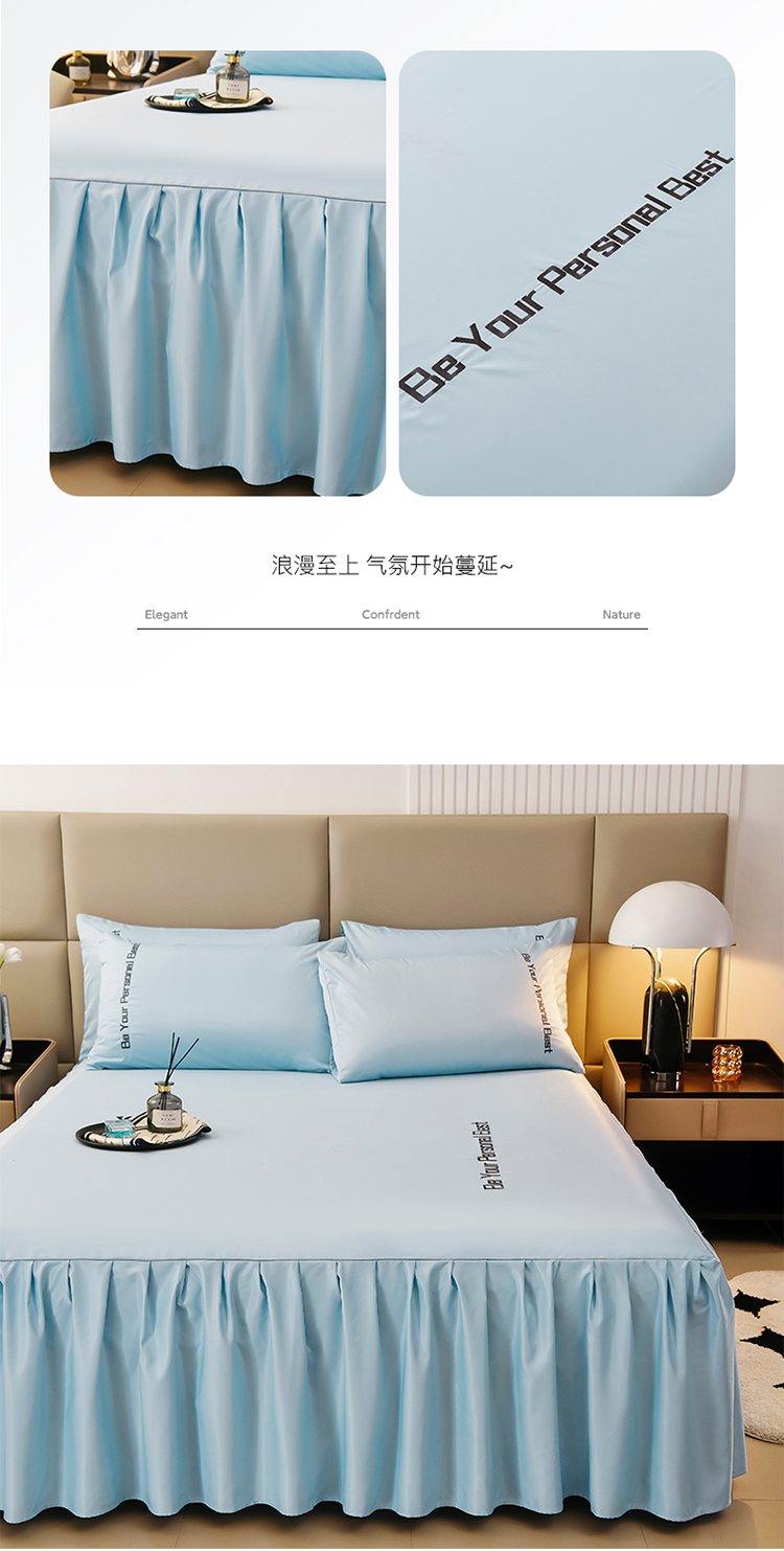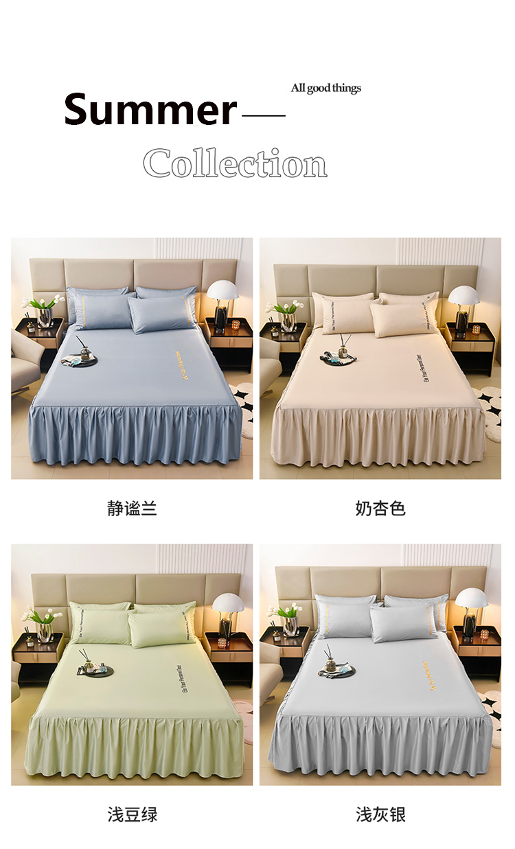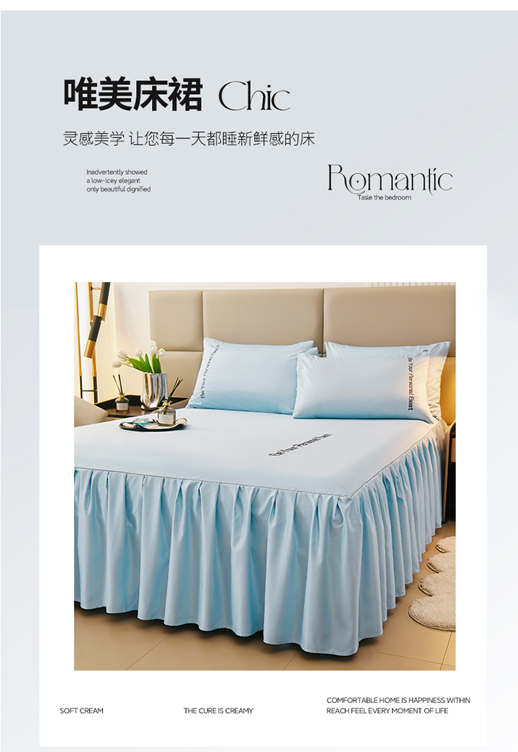 • 91家纺网 家纺一手货源 找家纺 七仙女家纺 2025新款水洗真丝天丝系列单床裙 浅水蓝