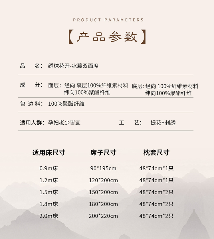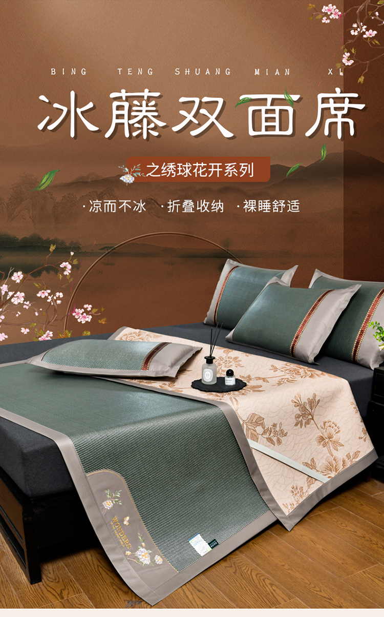 商品名称:小牛席业2023新款绣球花开-冰藤双面席 绣球花开-冰藤墨绿