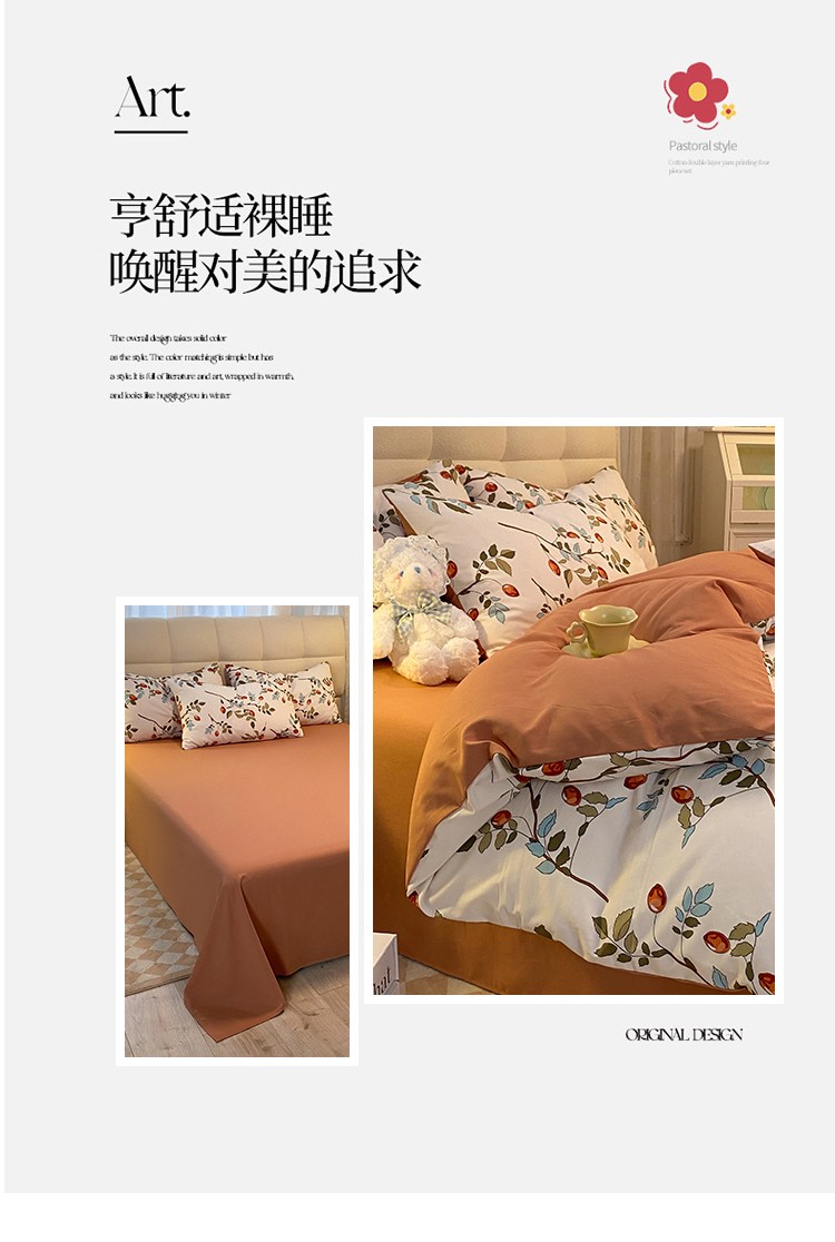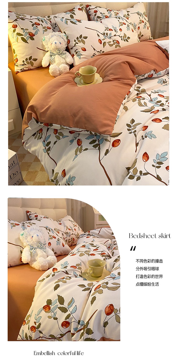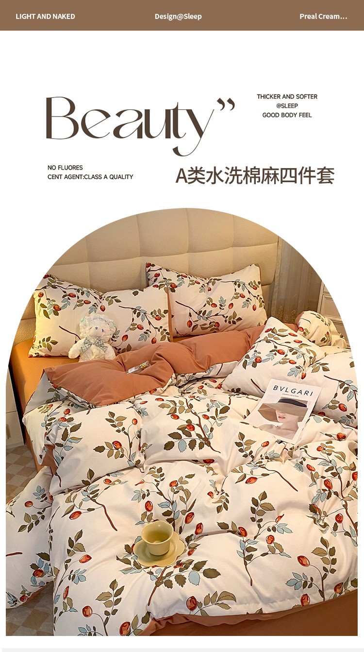 妖妖家纺2023新款水洗棉麻四件套 满园春色