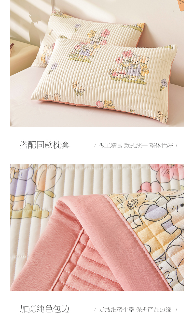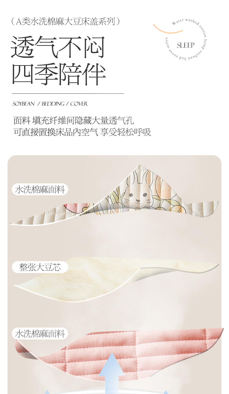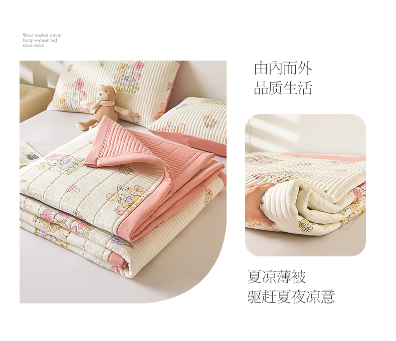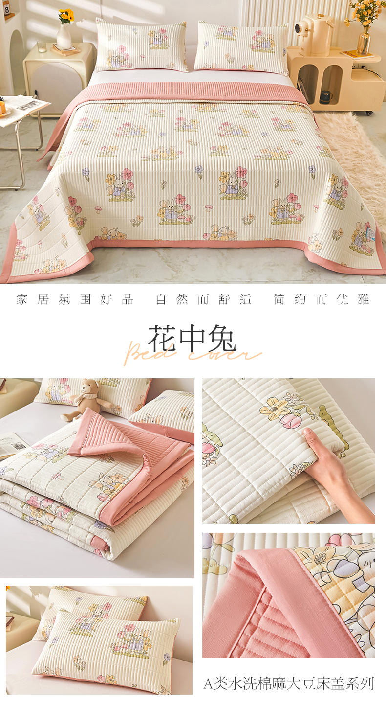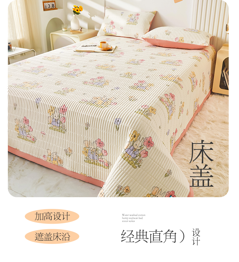 商品名称:水洗棉麻床盖大豆纤维夹棉加厚宿舍铺盖两用床单床裙保护垫花中兔
