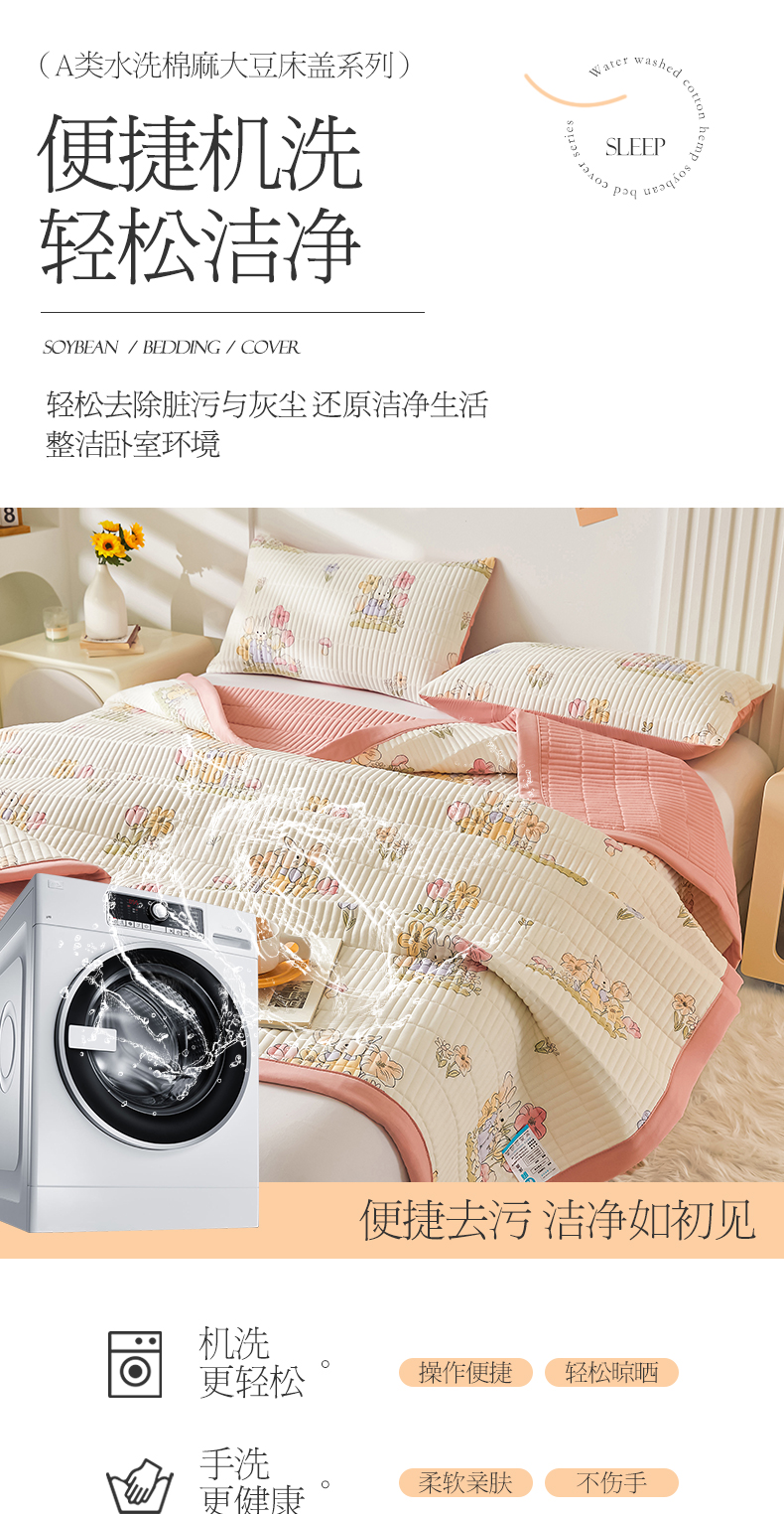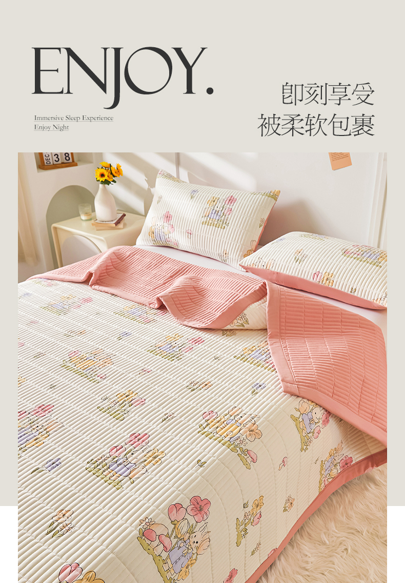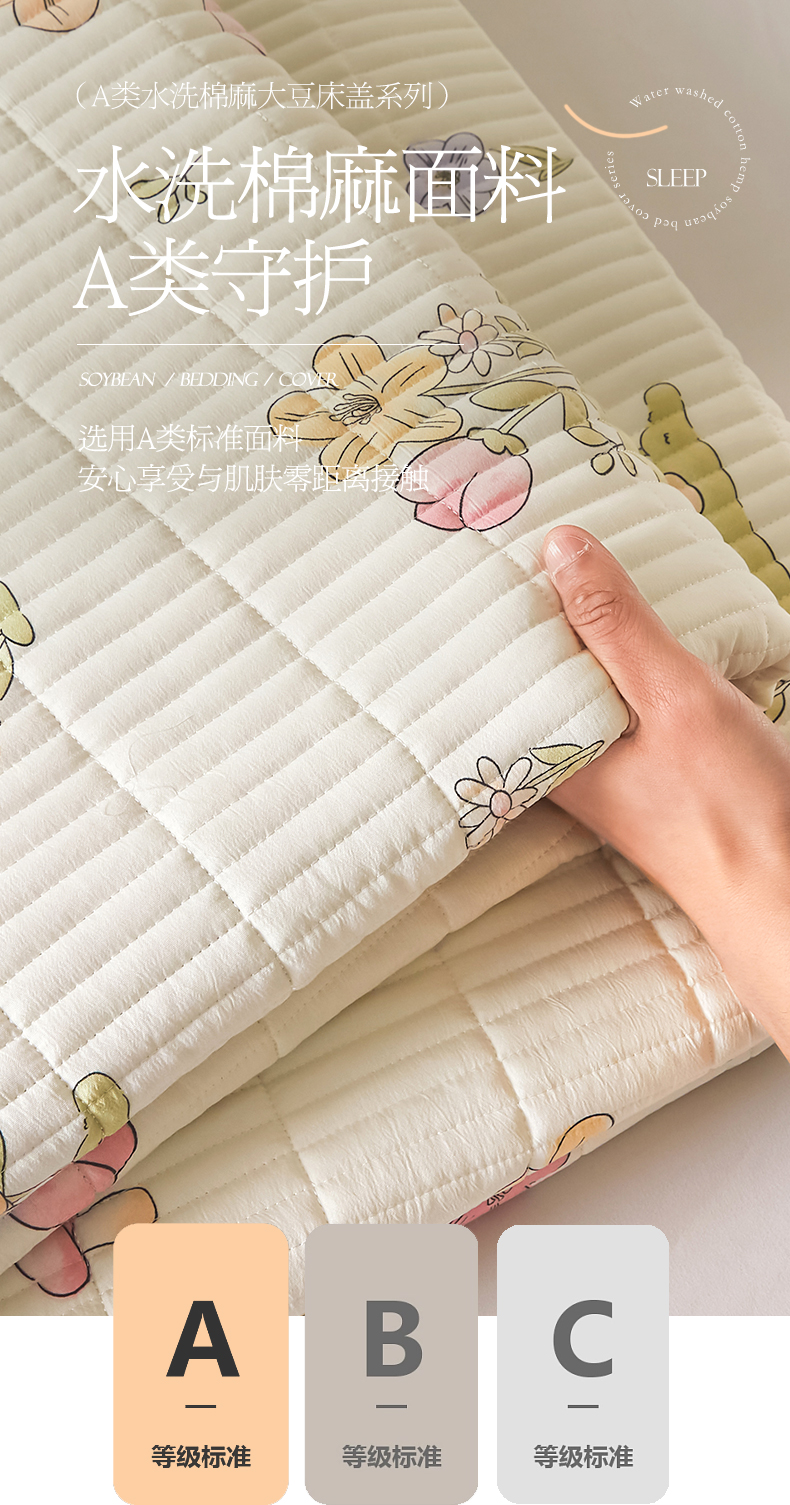 水洗棉麻床盖大豆纤维夹棉加厚宿舍铺盖两用床单床裙保护垫花中兔