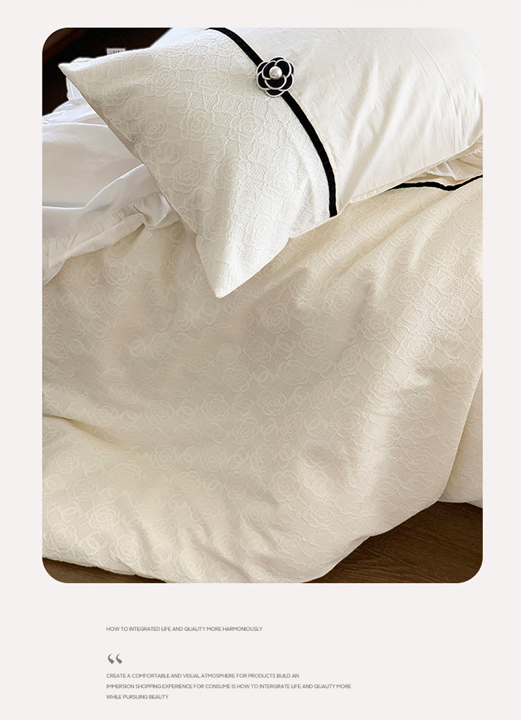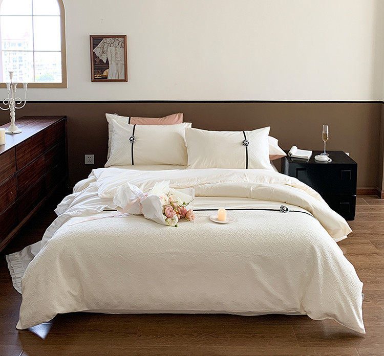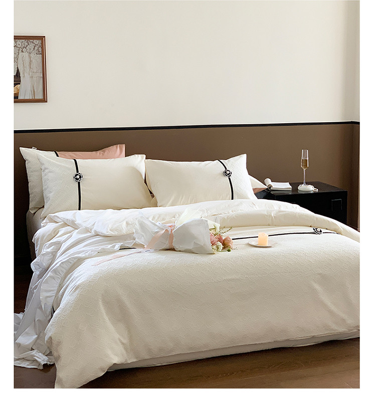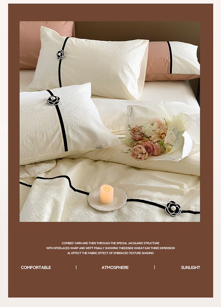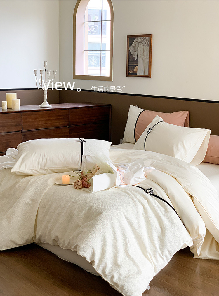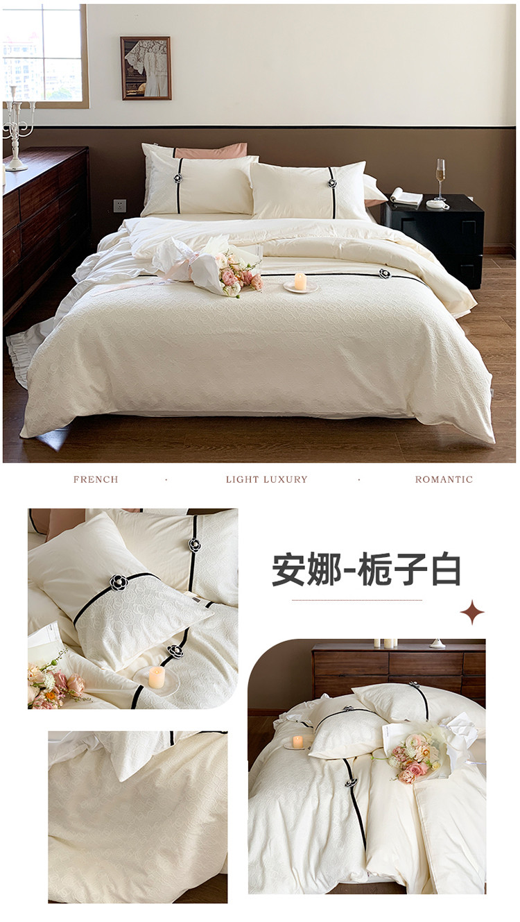 (总)玛奇朵 2025新款韩系少女全棉立体提花四件套-,青纱粉黛