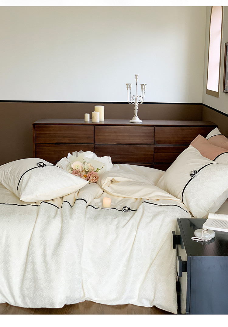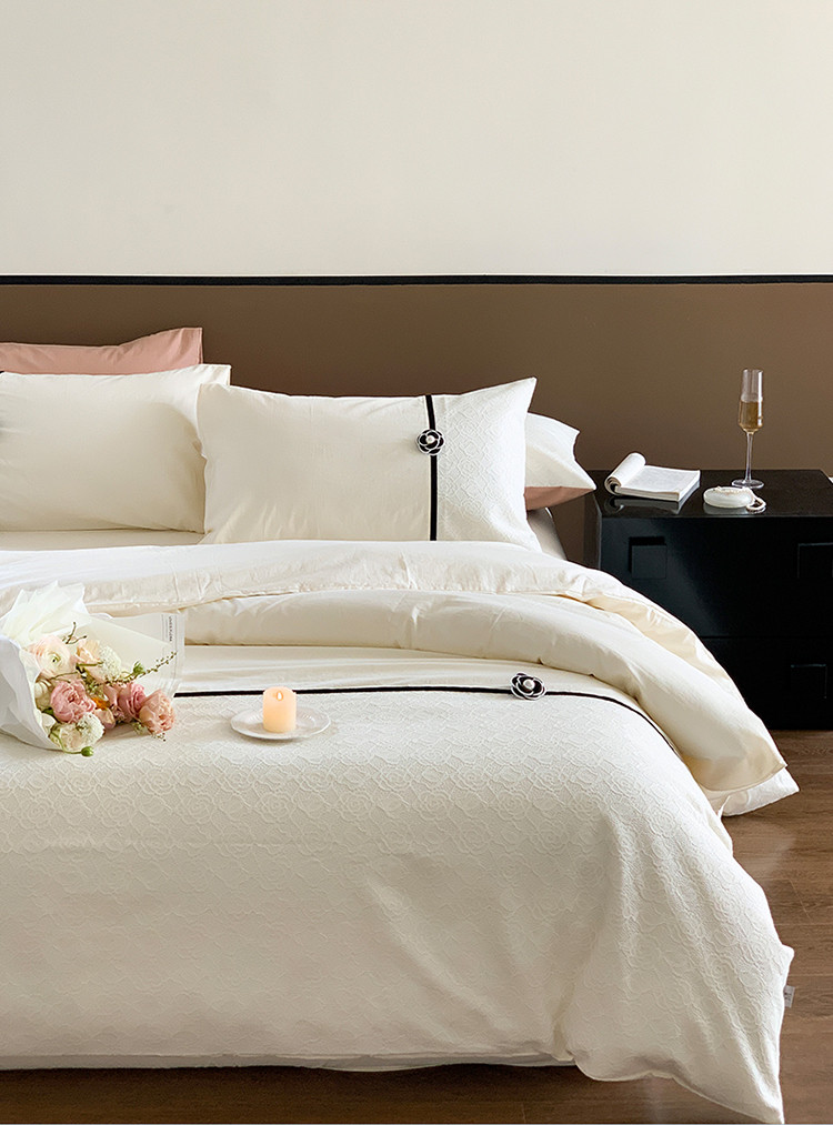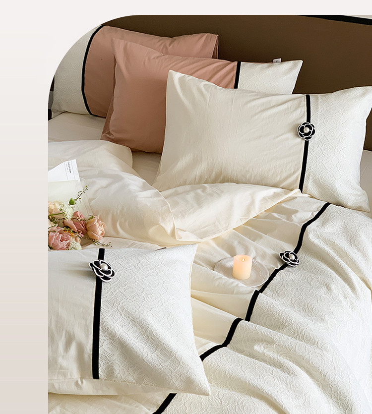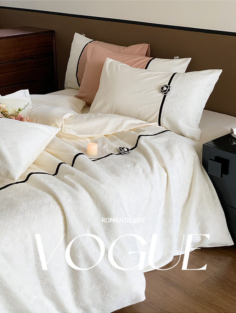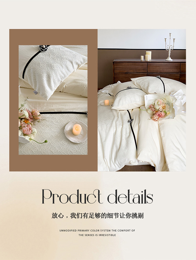 (总)玛奇朵 2025新款韩系少女全棉立体提花四件套-,青纱粉黛