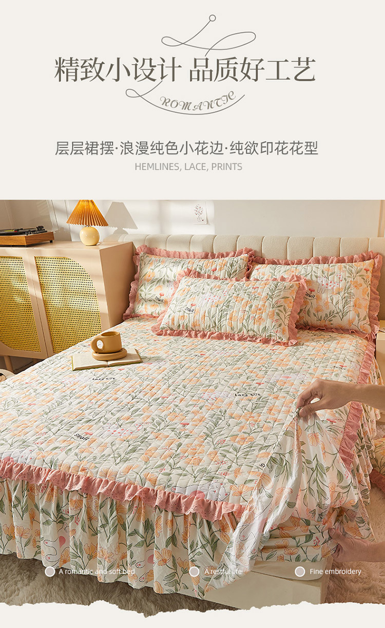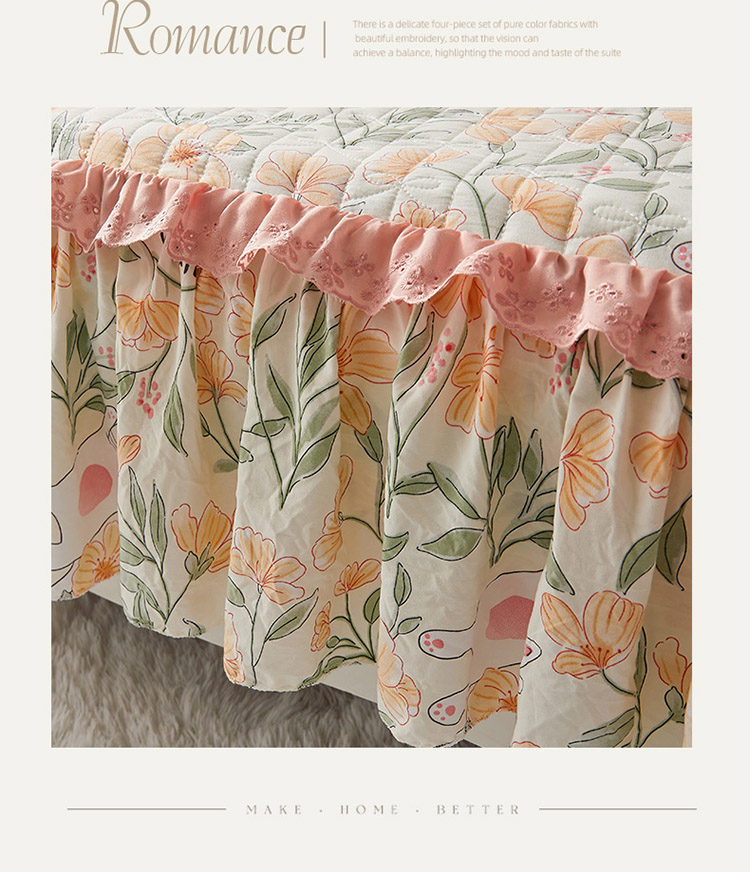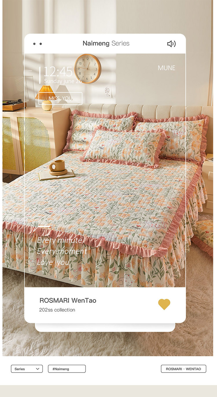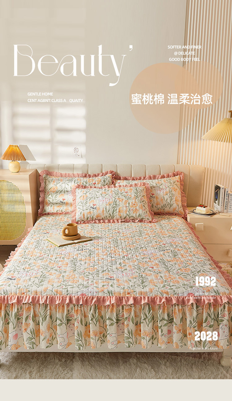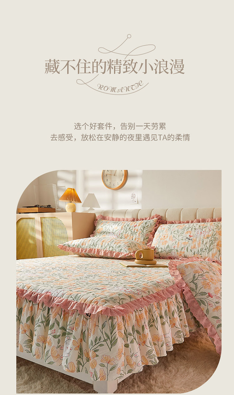 • 91家纺网 家纺一手货源 找家纺 恋尚 2023新款蜜桃棉印花床裙式床笠 爱恋时光