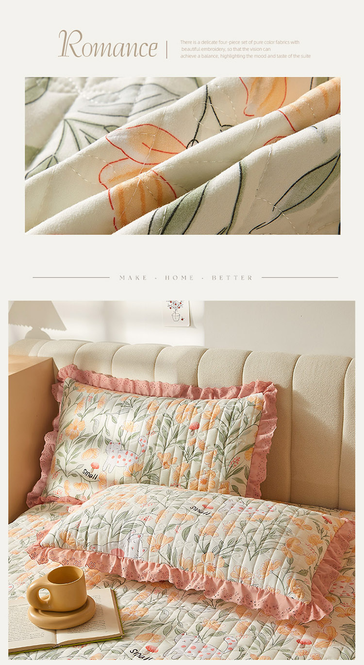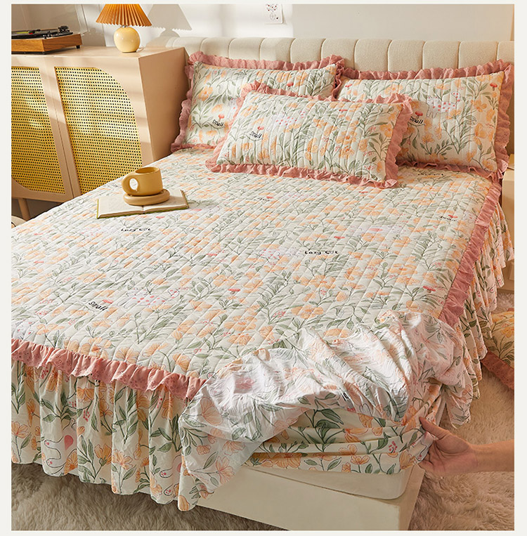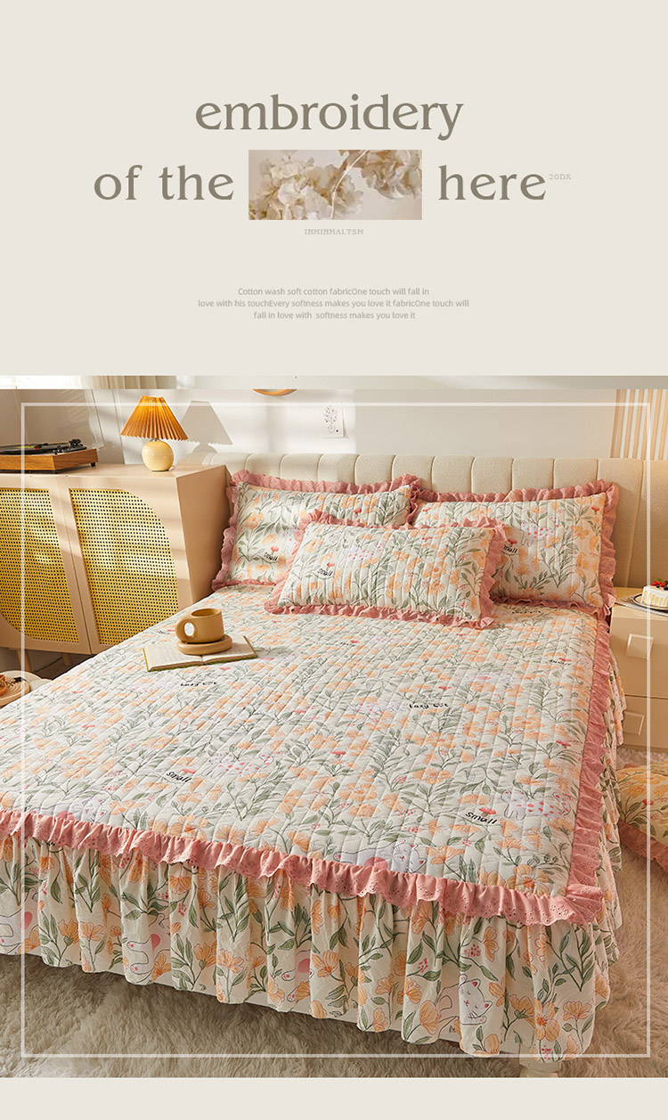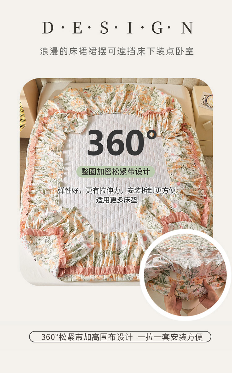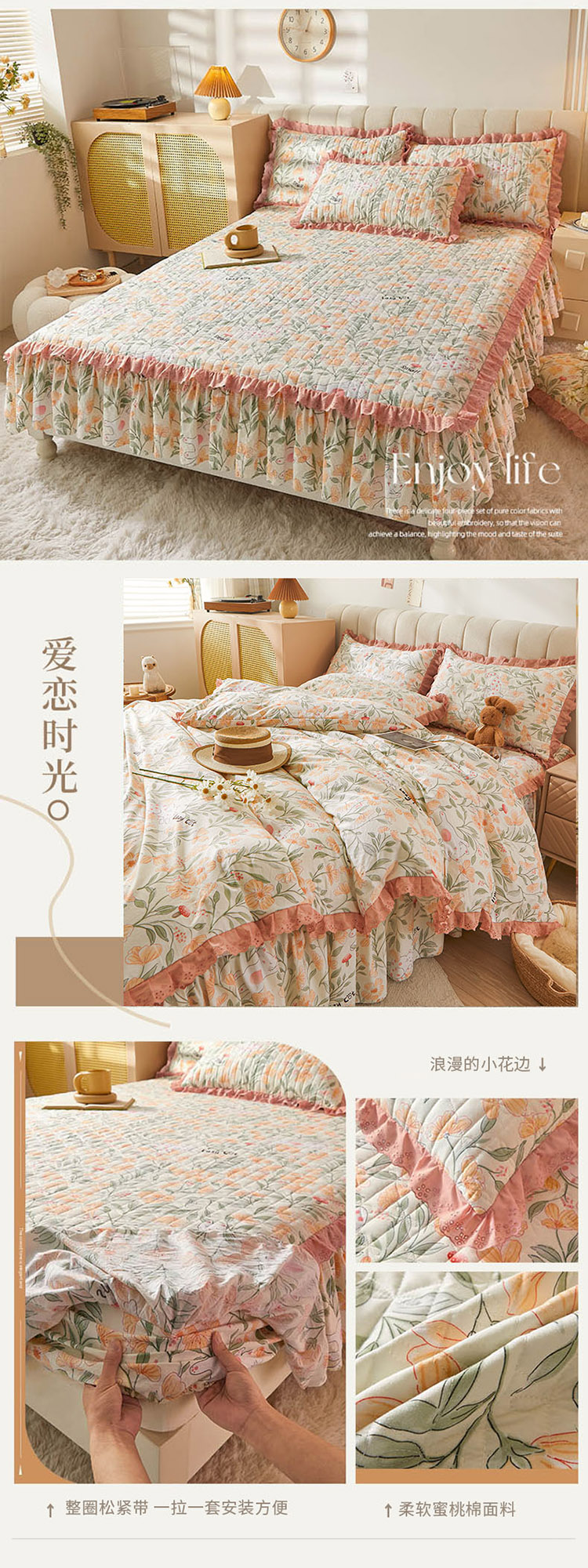 • 91家纺网 家纺一手货源 找家纺 恋尚 2023新款蜜桃棉印花床裙式床笠 爱恋时光