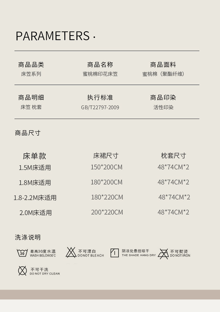 床单/床笠尺寸 7