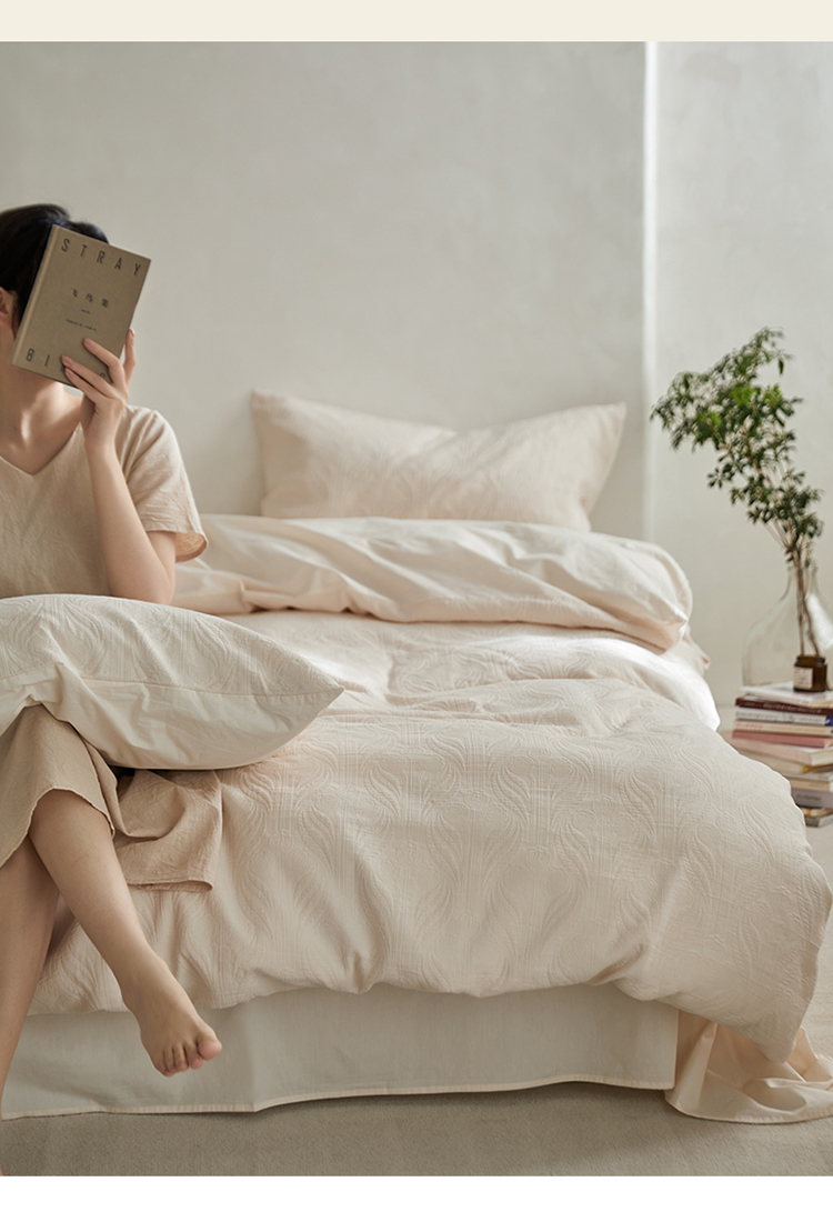 (总)名品优仓 2023新款全棉三层纱浮雕提花四件套-思语