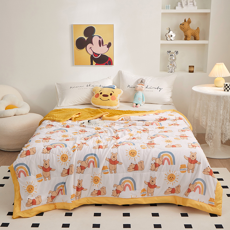 一米阳光 2023新款凉感丝豆豆款包边夏被 彩虹维尼